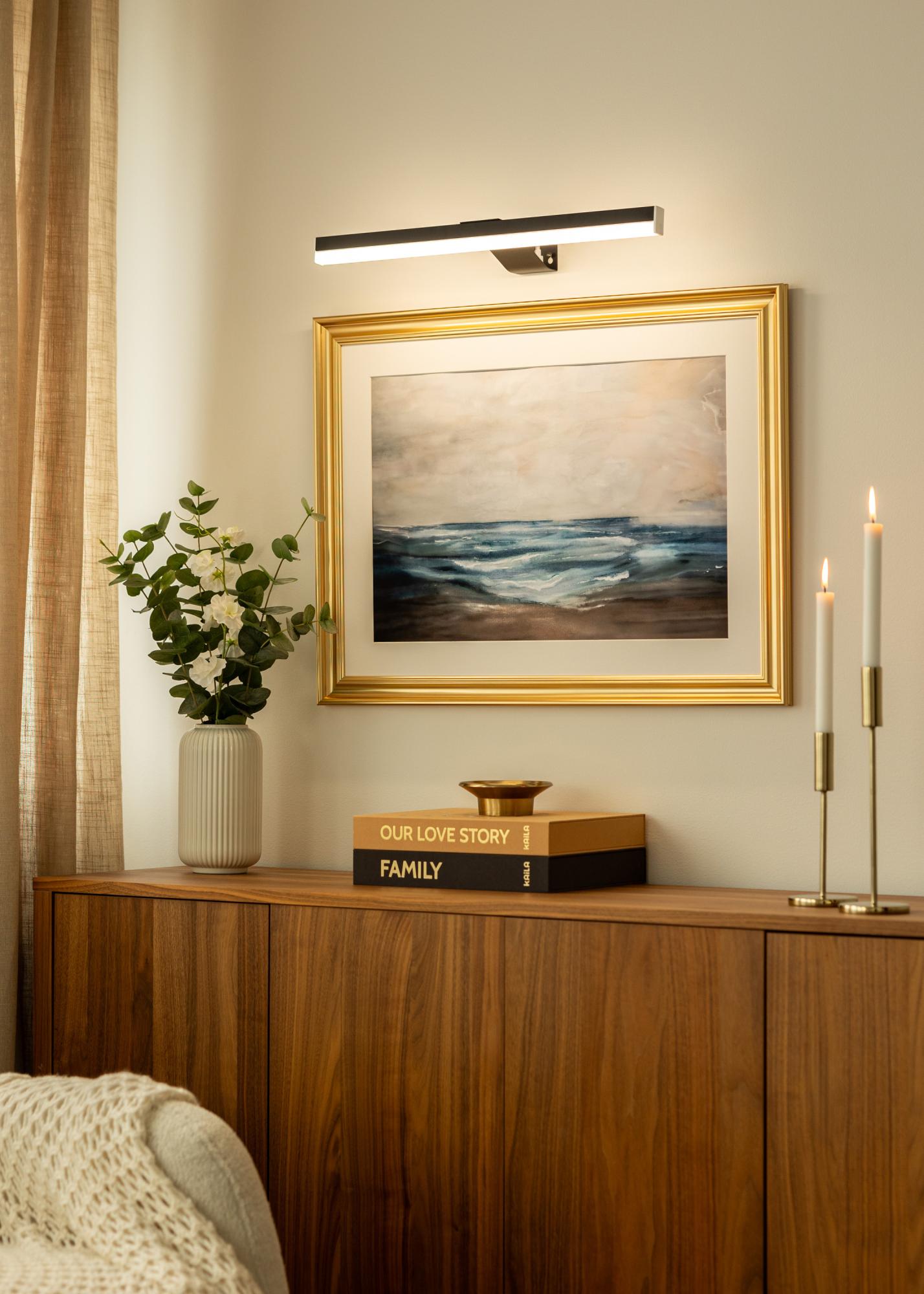 Това захранвано на батерии осветление за картини предлага дискретно и стилно решение за осветяване на вашите произведения на изкуството без да се притеснявате за кабели. Със своя безкабелен дизайн, можете лесно да монтирате лампата навсякъде в дома си, което я прави гъвкав избор за подчертаване на вашите картини или фотографии. Дълбочината на лампата е 15 см, което осигурява добро разстояние от стената за равномерно осветление на картини с максимална ширина до 80 см.