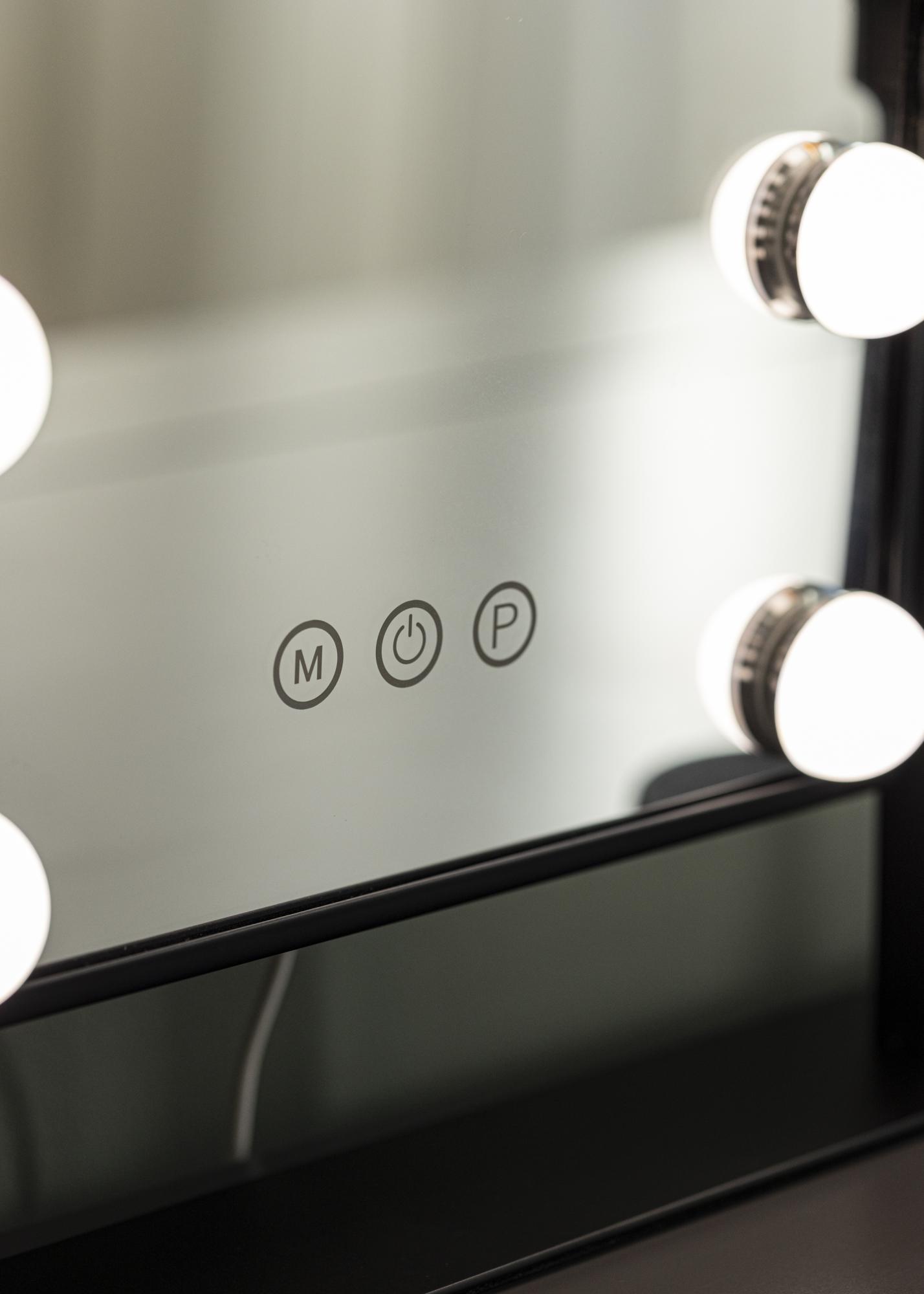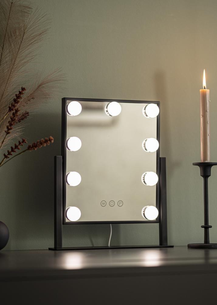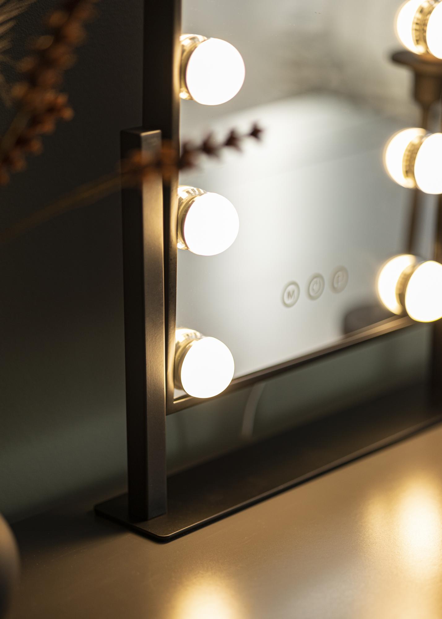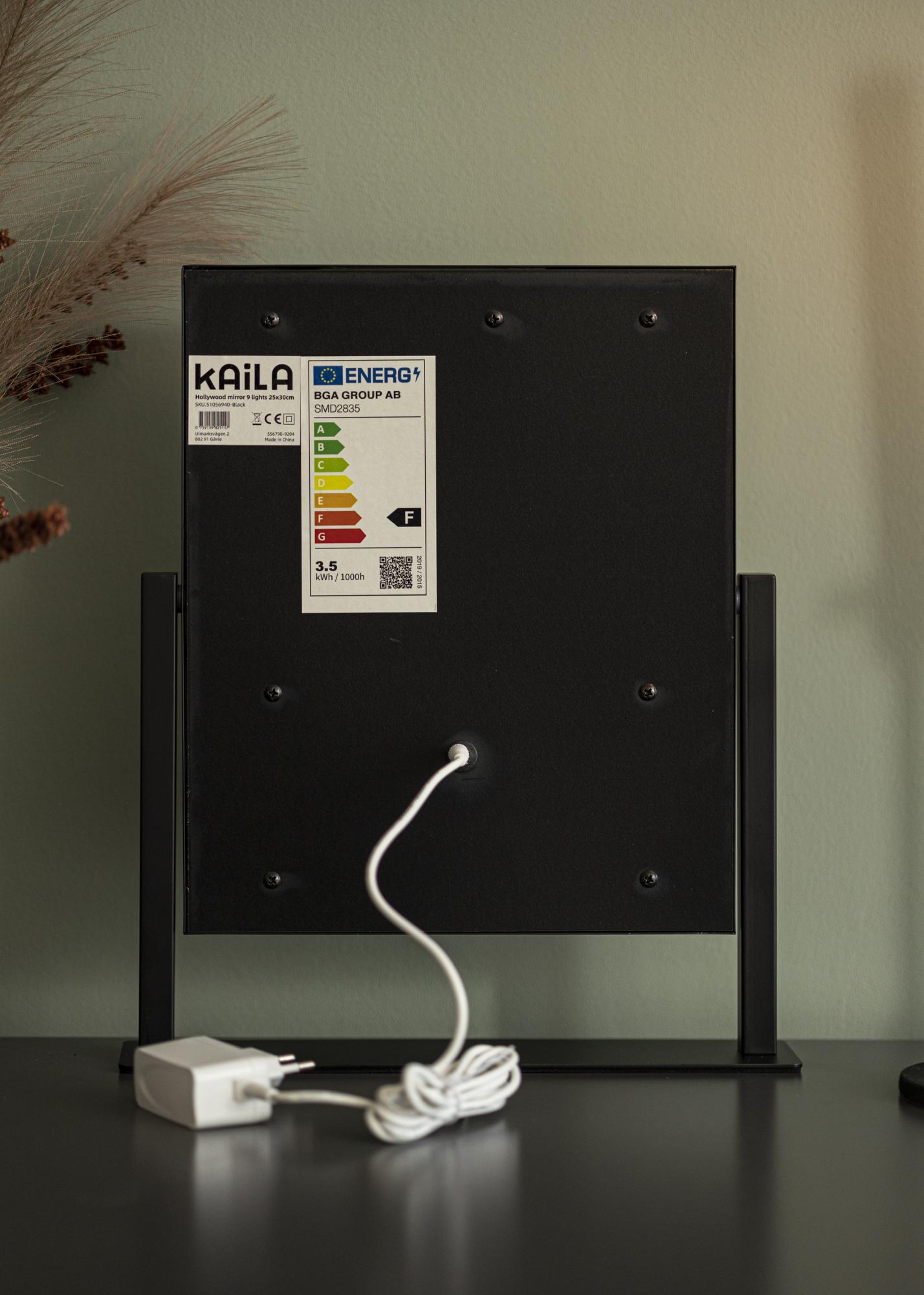 Почувствайте истинския Холивудски уют с това огледало за грим от KAILA. Луксозното огледало е също толкова стилно, колкото и практично, с 9 LED лампи, които обрамчват огледалната повърхност по много изтънчен начин. Черният цвят добавя към класическото усещане и прави огледалото лесно за съчетаване с интериора в различни стаи.