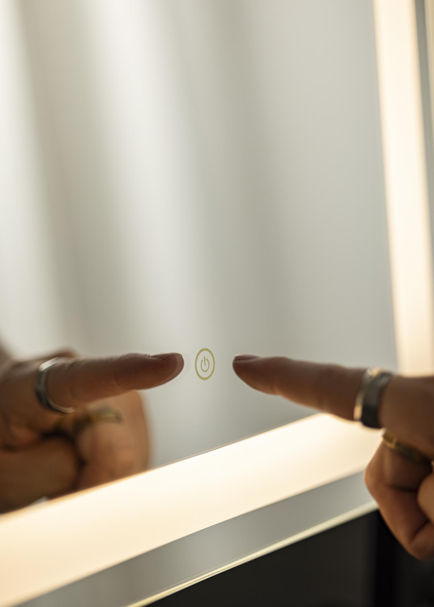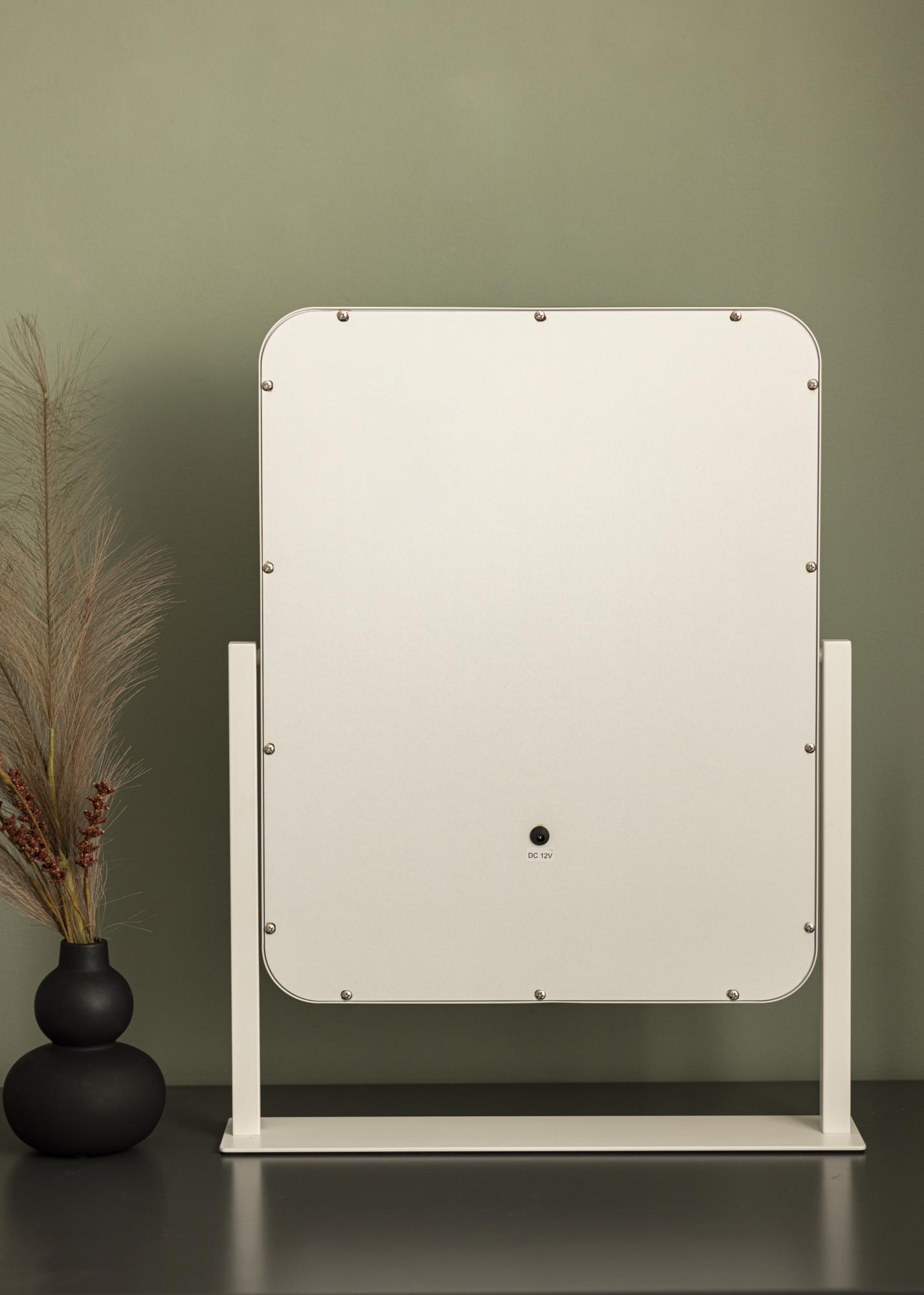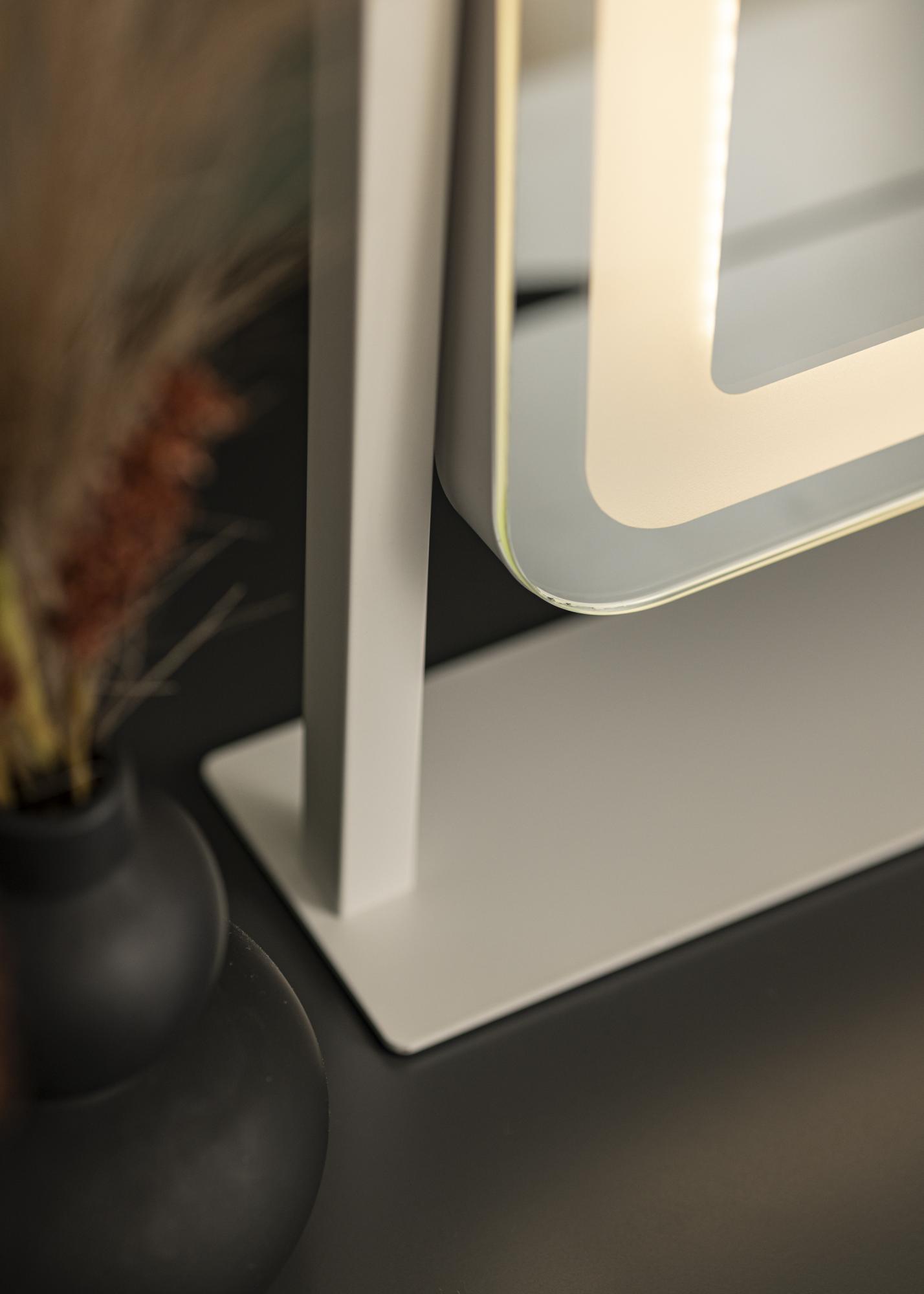Огледало за грим за тези, които се вълнуват от модерен дизайн! Това огледало от шведската марка KAILA има елегантен бял оттенък и матиран ръб с вградена LED осветление около стъклото на огледалото. LED осветлението дава топла бяла светлина при 3000K, което е идеално за нанасяне на грим. Лесно включвате осветлението чрез натискане на тъч бутона на екрана и регулирате яркостта, като задържите бутона за няколко секунди. Огледалото за грим е с размери 45x60 см и може да се накланя, така че лесно да се оглеждате от различни ъгли!