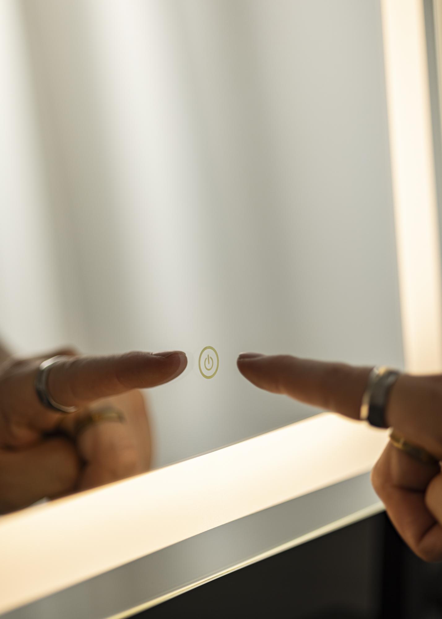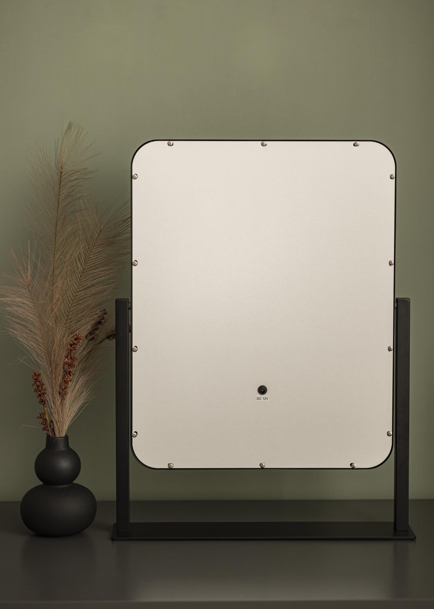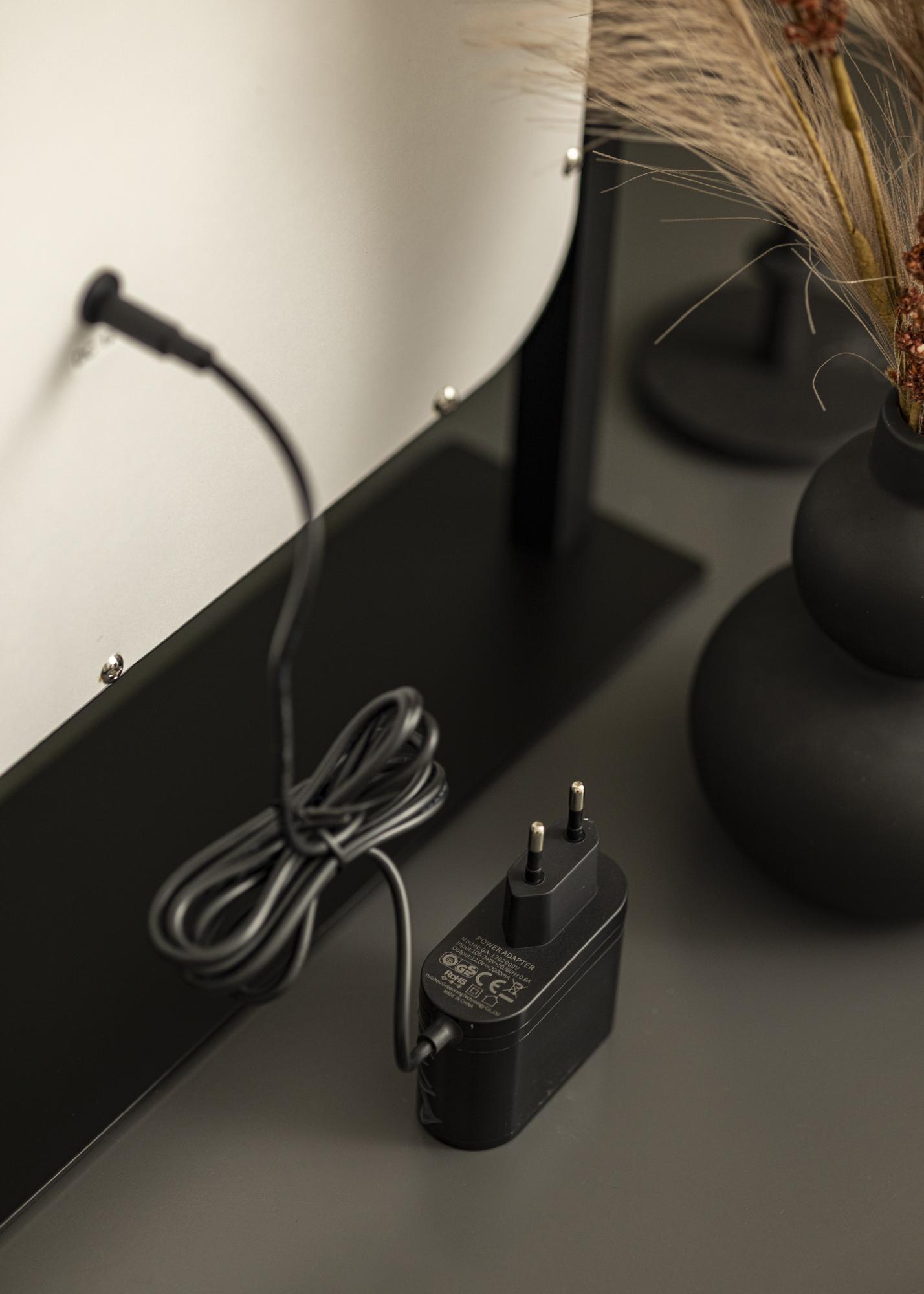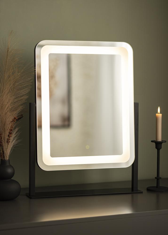 Огледало за грим за тези, които харесват модерен дизайн! Това огледало в шведски дизайн от KAILA е в модерен черен нюанс и има матова рамка с вградено LED осветление около огледалото. LED осветлението осигурява топла бяла светлина с 3000K, която е перфектна при прилагане на грим. Можете лесно да включите осветлението, като натиснете сензорния бутон на екрана и регулирате яркостта, като задържите бутона за няколко секунди. Огледалото за грим е с размери 45x60 см и може да се накланя, за да се огледате лесно от различни ъгли!