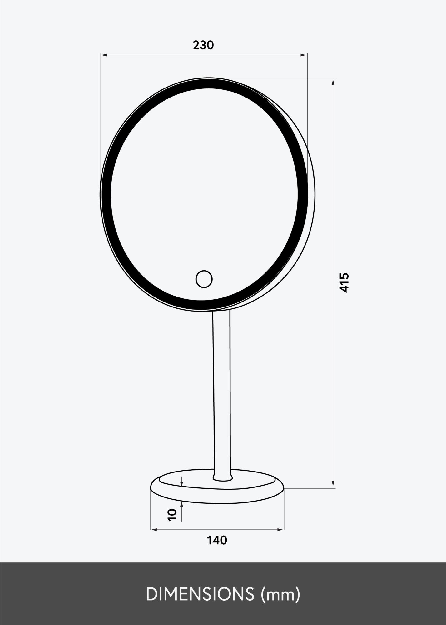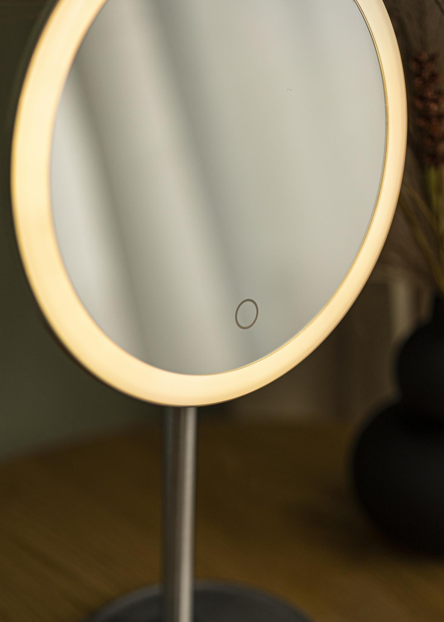 Това е класическо огледало за баня с LED осветление – перфектно, когато искате да се огледате с добро фокусиране. Интегрираното осветление има регулираща се яркост и цветна температура. Всичко, което трябва да направите, е да задържите натиснат бутона за докосване на огледалото за няколко секунди, за да промените светлинните настройки. Огледалото има вградена батерия, която се зарежда с включения зареждащ кабел.
