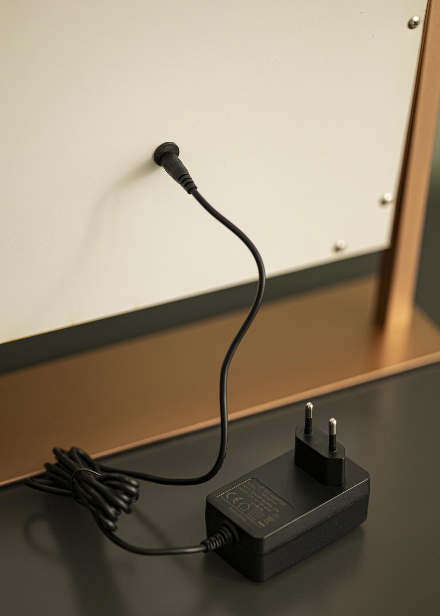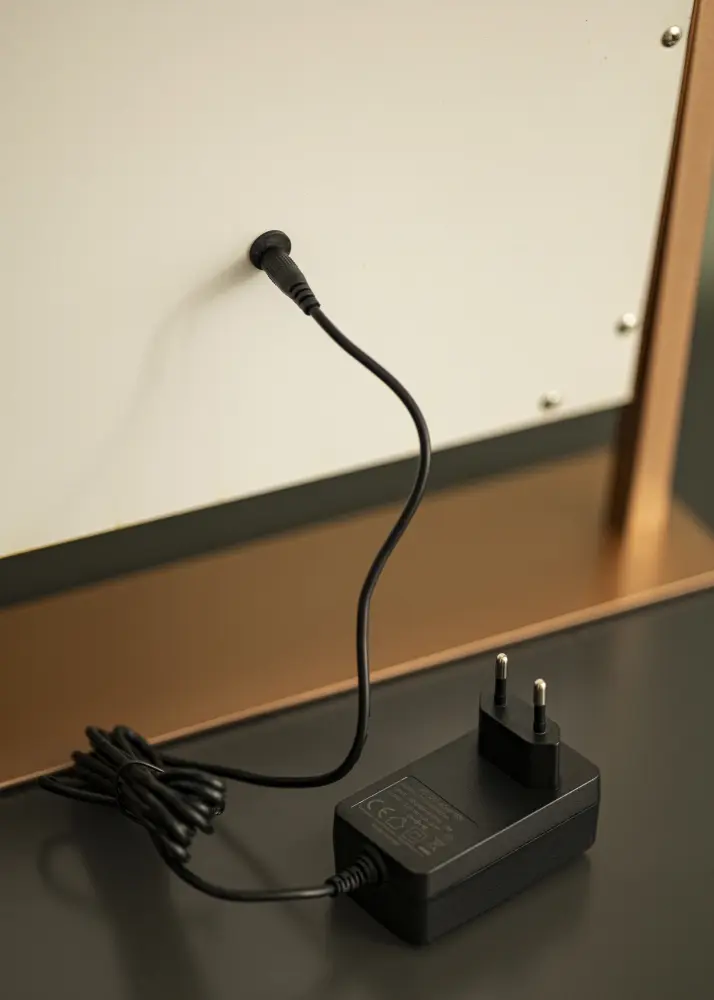 Това козметично огледало се поставя в собствения ви кът за грим, в дневната или в която и да е друга стая, където желаете красиво огледало. Дизайнът, който позволява поставяне на стойка, също така ви позволява да накланяте повърхността на огледалото. Електрическото свързване се извършва с щепсел.