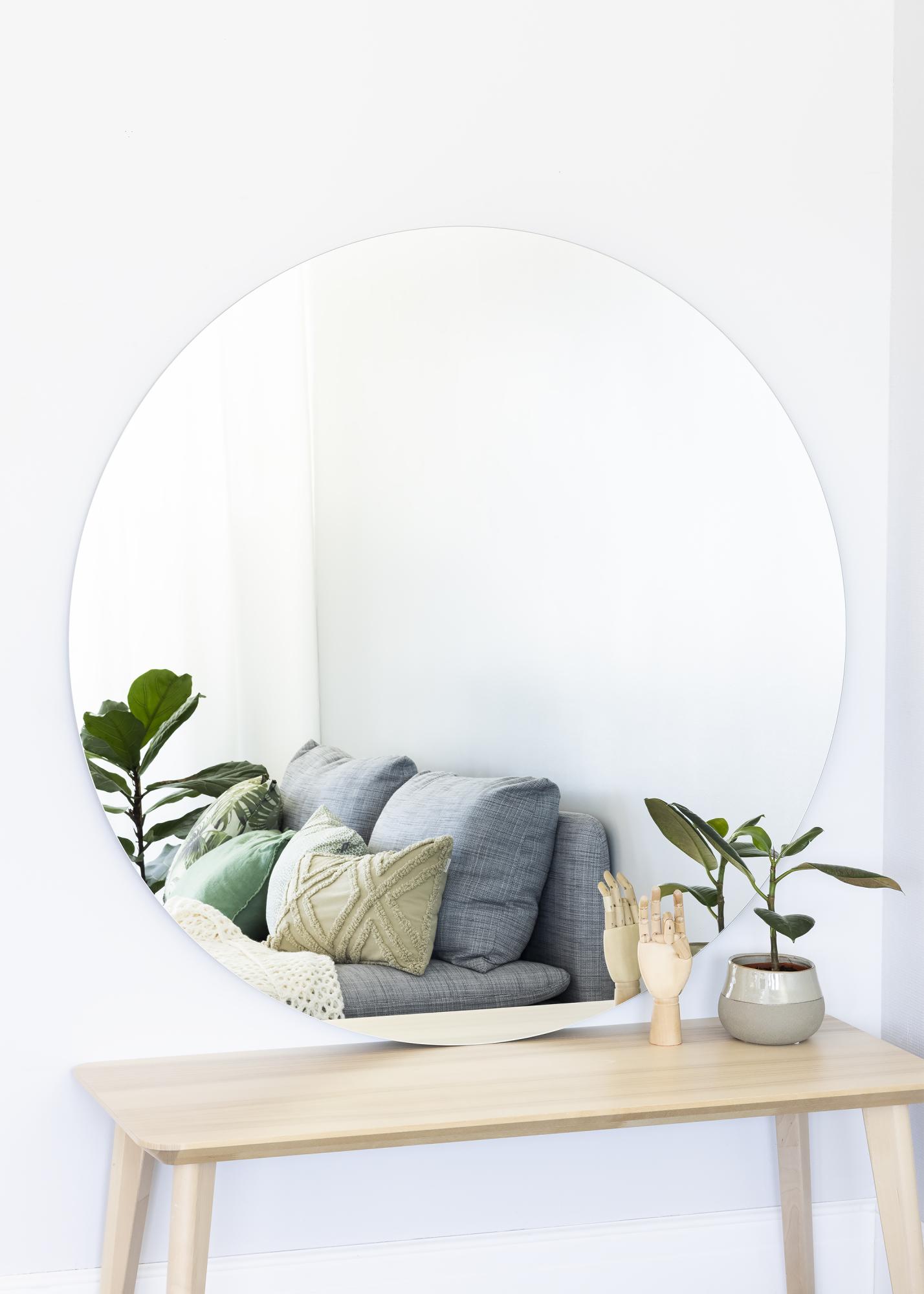 120 см Ø кръгло огледало, което е част от серия кръгли огледала от KAILA. Предлага се в цели 13 размера, за да намерите размера, който пасва перфектно на вашата стая. Огледалото е изключително тънко и стилно, и подхожда на всички видове стаи и интериорни стилове.