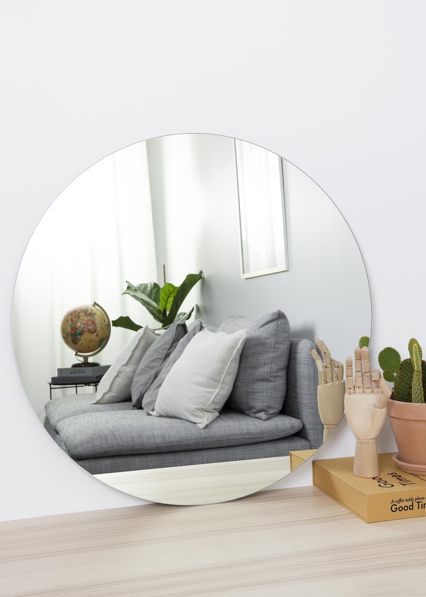 70 cm Ø кръгло огледало, което е част от серия кръгли огледала от KAILA. Предлага се в цели 13 размера, за да намерите размера, който пасва перфектно на вашата стая. Огледалото е изключително тънко и стилно и пасва на всички видове стаи и интериорни стилове.
