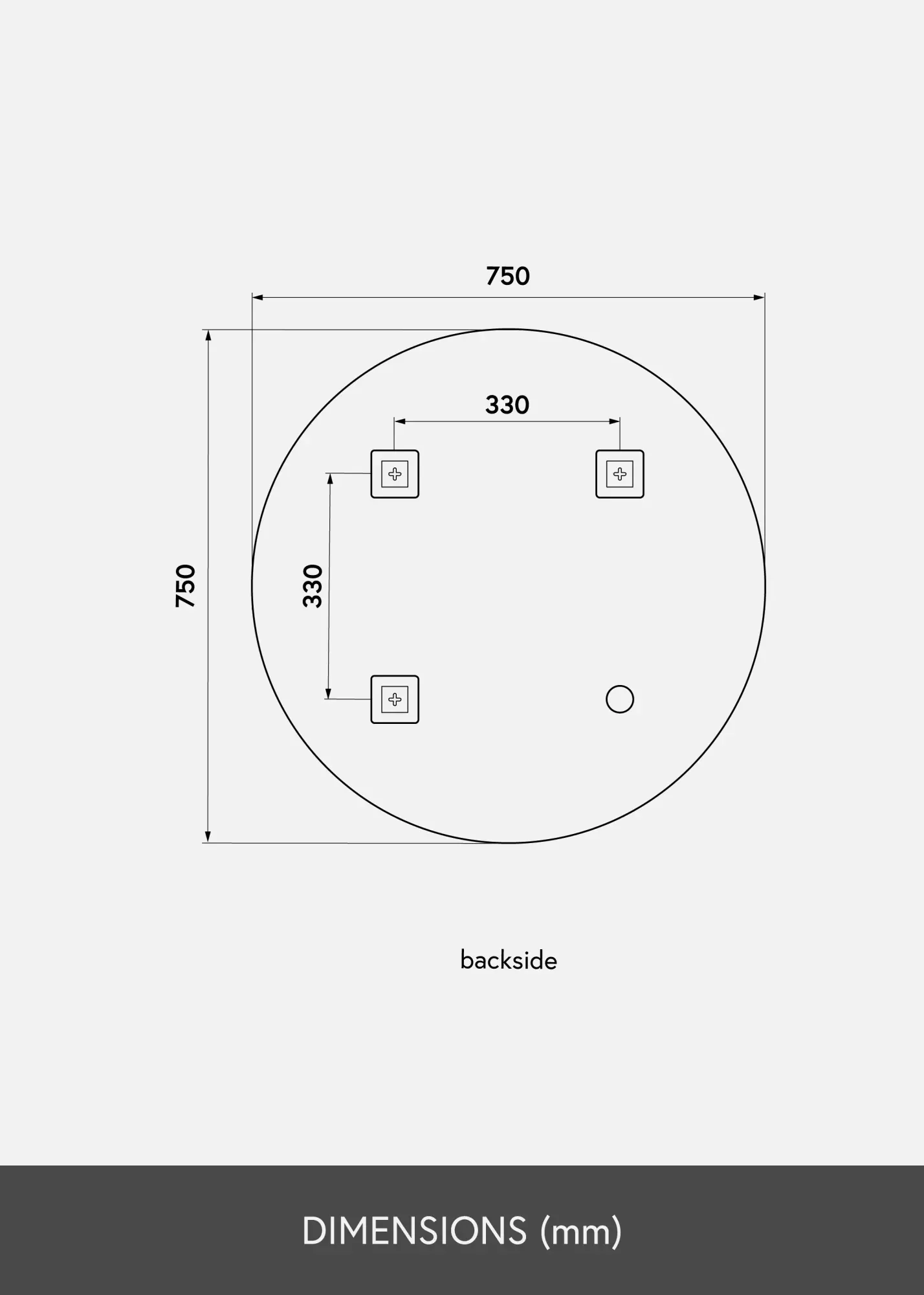 Огледална повърхност: 75 cm Ø
