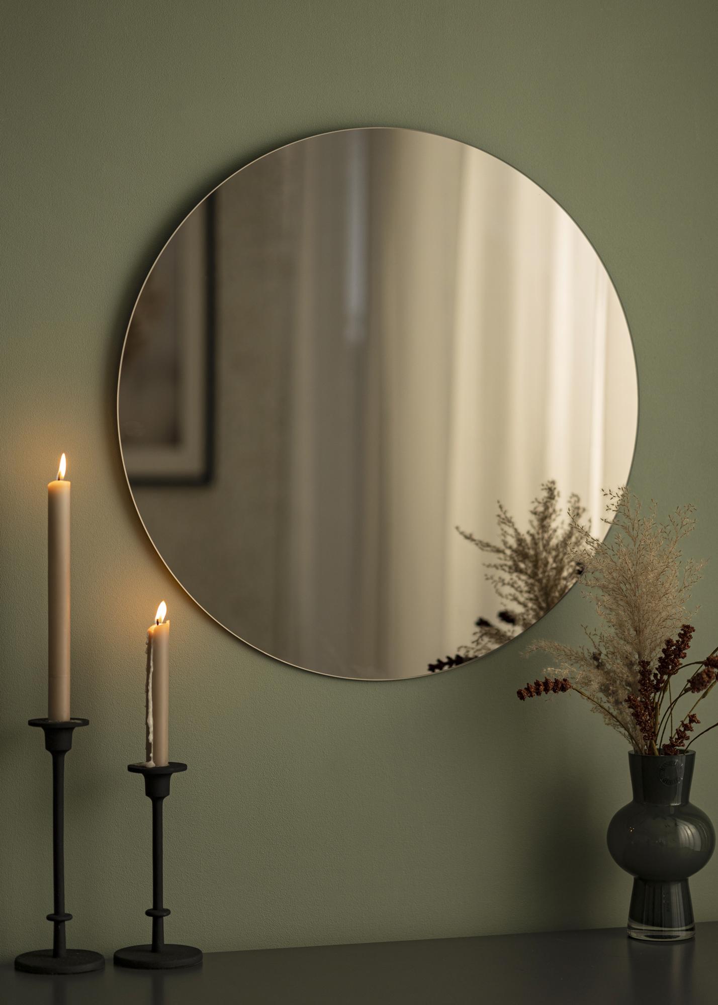 Това кръгло огледало има тънък дизайн без рамка, което придава елегантен и ексклузивен вид, който повдига всяка стая. С огледалното стъкло в бронзов нюанс стената има наситено и уютно излъчване, което пасва перфектно в модерни домове. Огледалото е част от серия кръгли, бронзови огледала от KAILA и може да избирате между седем различни размера, за да откриете този, който най-добре пасва на вашия дом. Този модел има диаметър от 60 см. Можете лесно да закачите огледалото в коридора или всекидневната с помощта на стенния държач.
