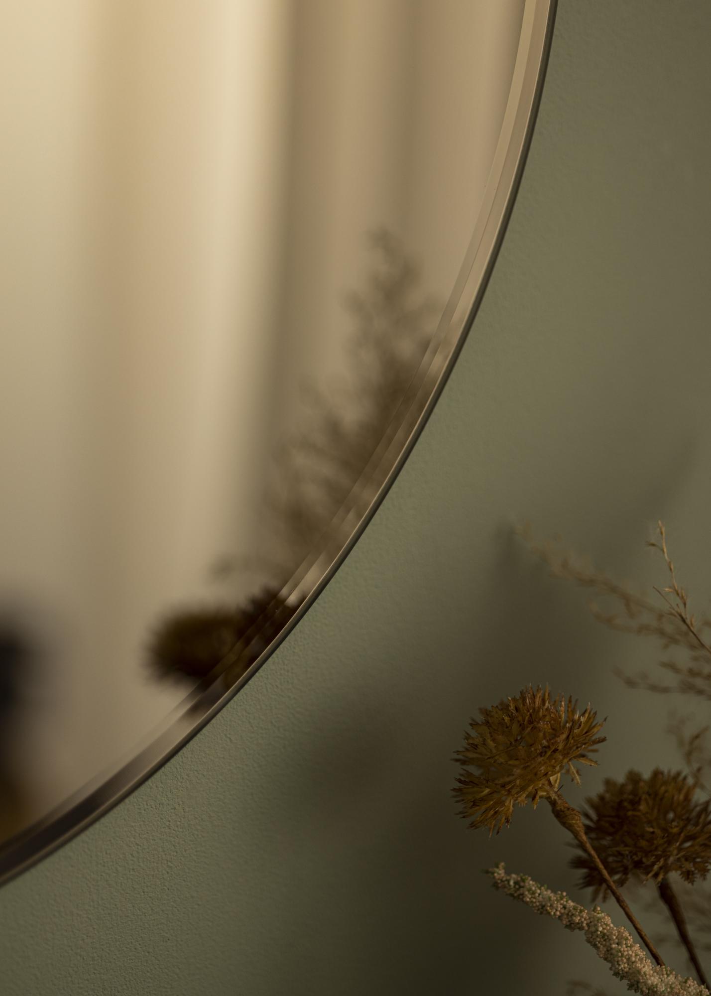 Едно огледало в по-тъмния бронзов нюанс ще бъде изискан елемент във вашия дом. Това стеново огледало има мека кръгла форма и елегантно бронзово тонирано огледално стъкло. Изисканата цялост се допълва от полираната фасетна рамка. Огледалото функционира също толкова добре самостоятелно, колкото и в комбинация с други огледала с различни размери и цветови нюанси.