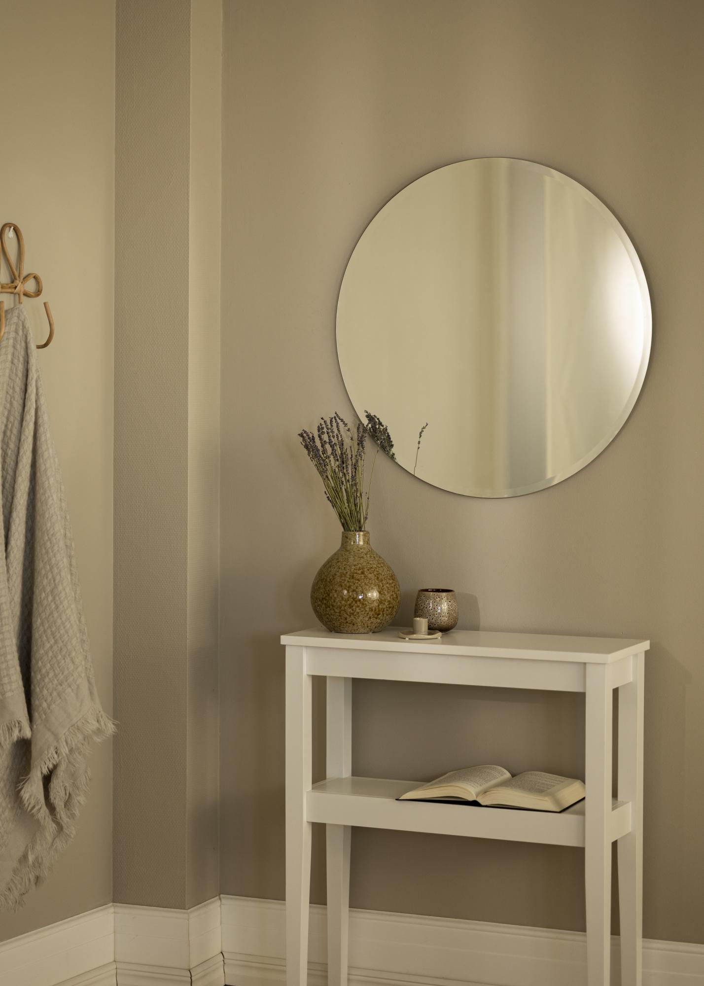 Това кръгло огледало се предлага в няколко различни размера, като този вариант има размер 70 см Ø.