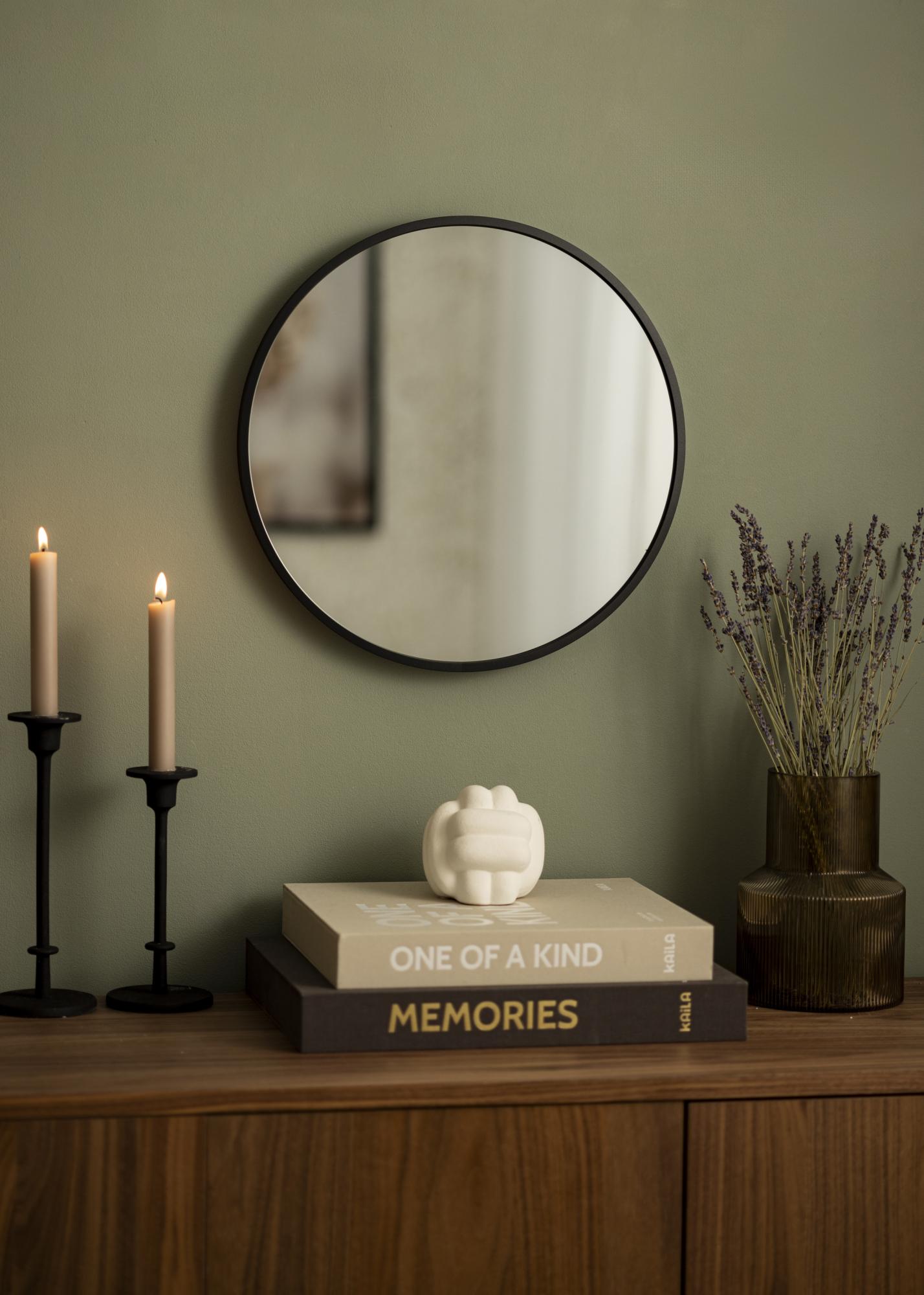 KAILA Round Mirror Edge Black е кръгло огледало с изчистена тънка метална рамка в матово черно, която придава индустриален и модерен вид. Рамката има дълбочина между 30-40 мм в зависимост от размера, което кара огледалното стъкло да излезе малко напред от стената и създава впечатляващ 3D ефект. Дълбочината на рамката също така прави огледалото да изглежда стабилно, като същевременно запазва своя минималистичен вид. Перфектно кръгло огледало, което да поставите в която и да е стая, където искате да добавите функционалност и стилен шведски дизайн!