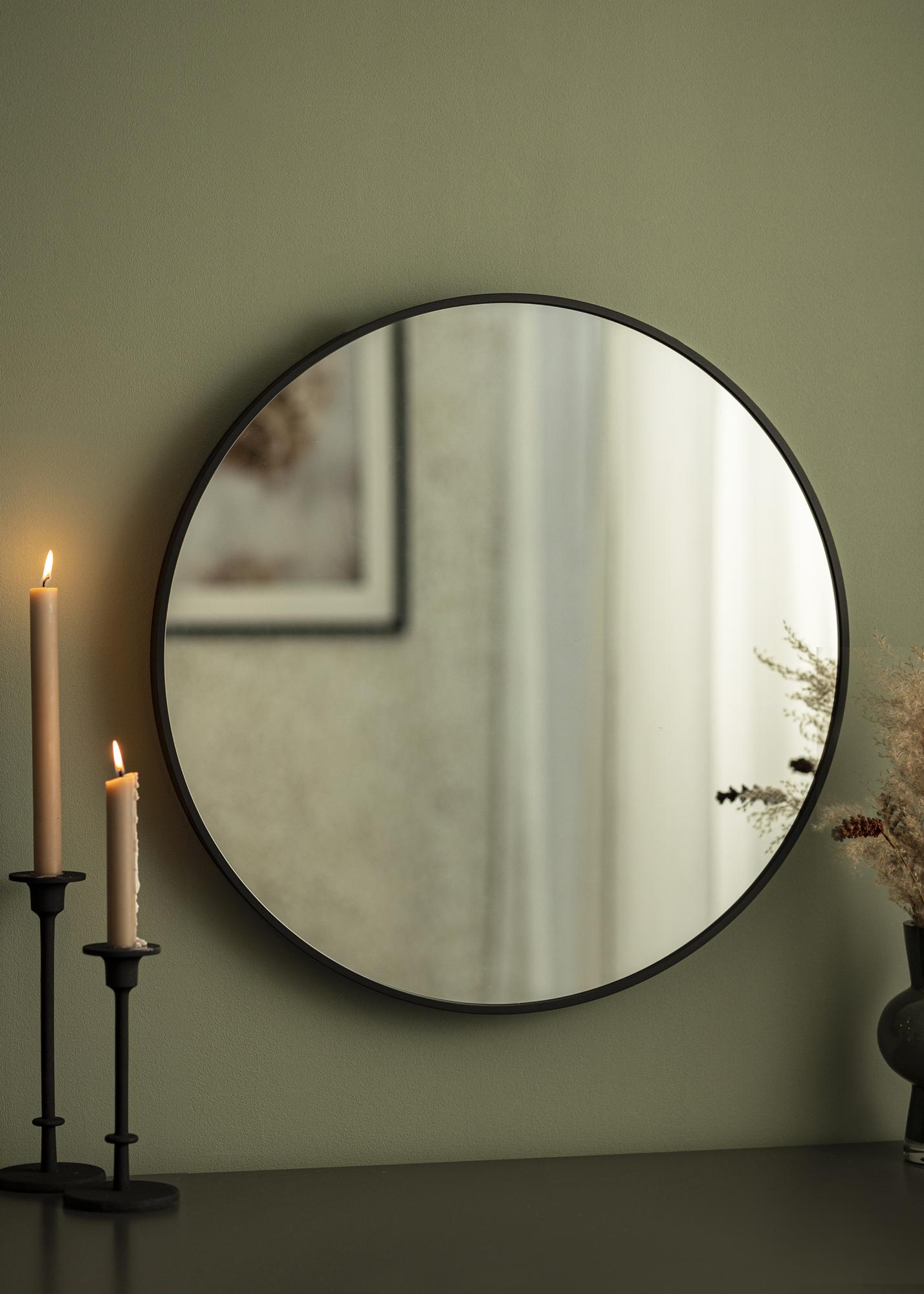 KAILA Round Mirror Edge Black е кръгло огледало с елегантна тънка метална рамка в матово черно, което му придава индустриален и модерен вид. Рамката има – в зависимост от размера – дълбочина между 30-40 мм, което прави така, че огледалното стъкло се издава малко от стената и създава впечатляващ 3D ефект. Дълбочината на рамката също така прави огледалото стабилно, като същевременно запазва минималистичния си външен вид. Перфектно кръгло огледало, което да поставите във всяка стая, където искате да добавите функционалност и елегантен шведски дизайн!