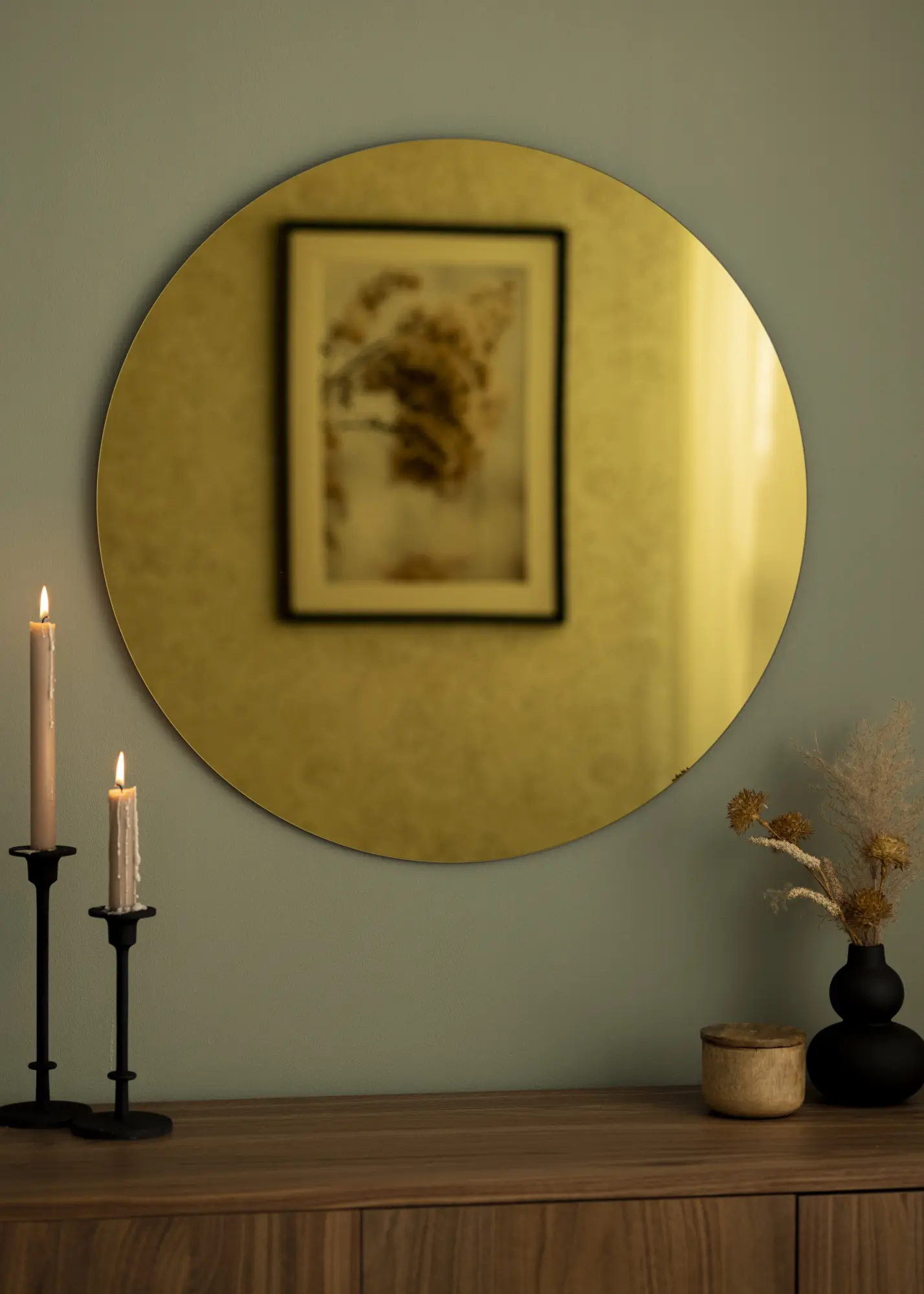 KAILA Кръгло Огледало Gold се предлага в няколко размера, като тази версия е с размер 70 см Ø.