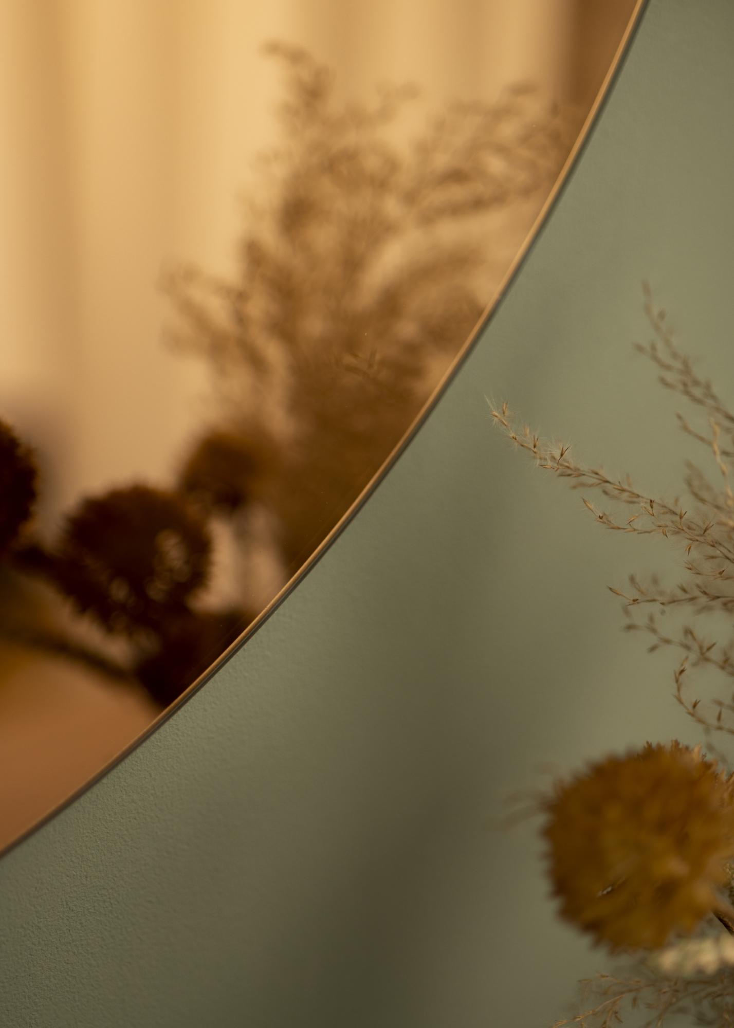 KAILA Кръгло Огледало Розово Злато е резултатът от съчетанието на изчистената форма с ефектни детайли. Кръгло огледало, което е тънко и без рамка, създаващи стилно впечатление. Това в комбинация с розово-златния цвят на огледалото прави това огледало привличащо вниманието и много елегантен детайл в интериора.