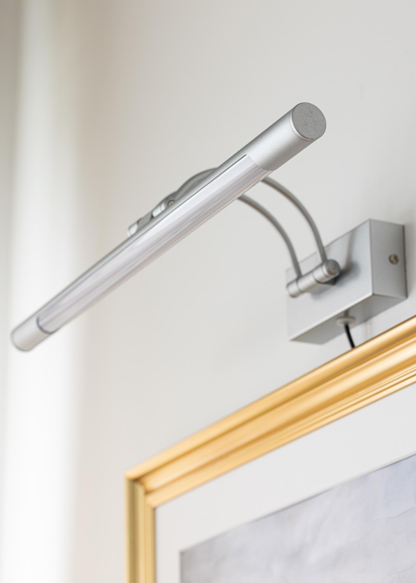Стилният сребрист завършек се вписва отлично както в модерни, така и в класически интериори и служи като фин, но ефективен комплимент към вашите стенни декорации. С това осветление за картини можете да бъдете сигурни, че вашите произведения на изкуството ще бъдат подчертани по вкусен и адаптивен начин, създавайки хармонично усещане в стаята.