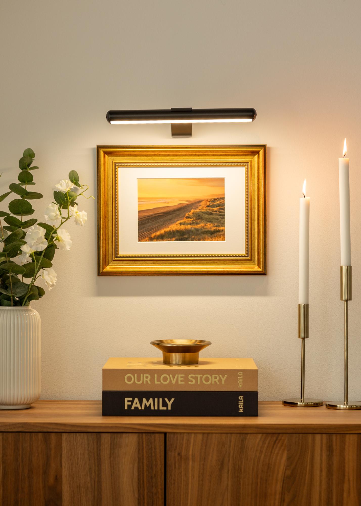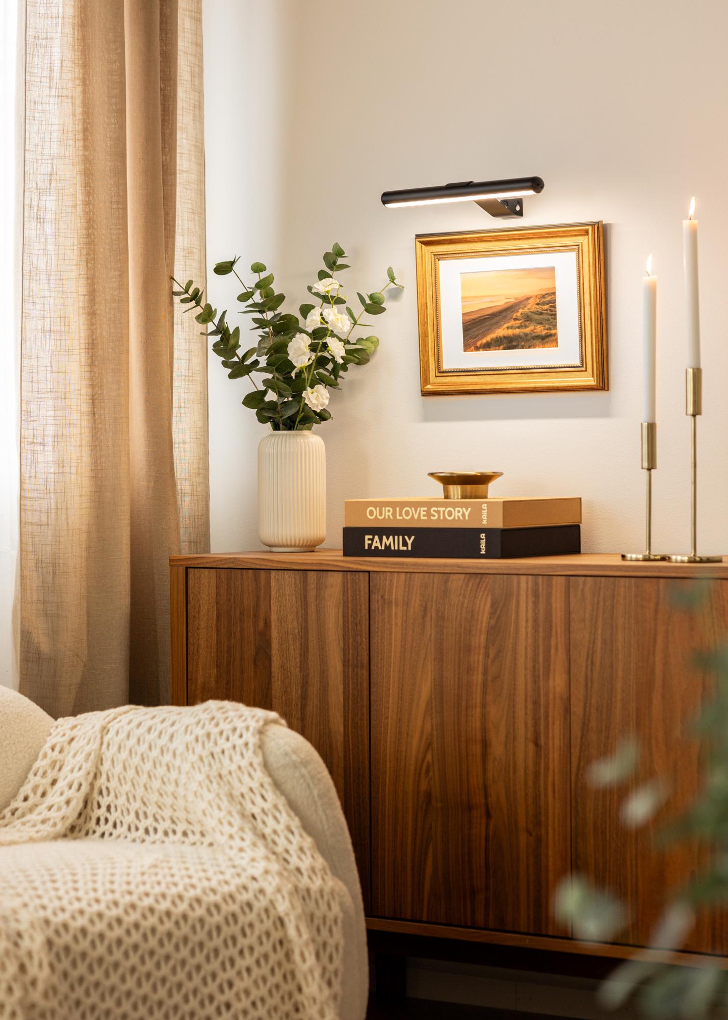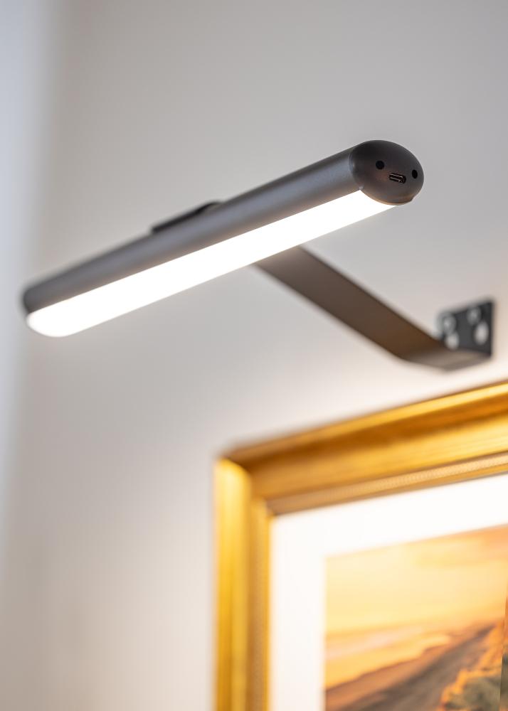 Тази безжична осветителна система за картини с черен дизайн е стилно и практично решение за подчертаване на вашите произведения на изкуството без нужда от кабели. С гъвкав монтаж тя може да бъде поставена навсякъде по стената, което я прави перфектна за пространства, където няма електрически контакт наблизо. С дълбочина от 15 см и дължина от 33 см, тя е идеална за осветяване на произведения на изкуството с максимална ширина до 60 см.