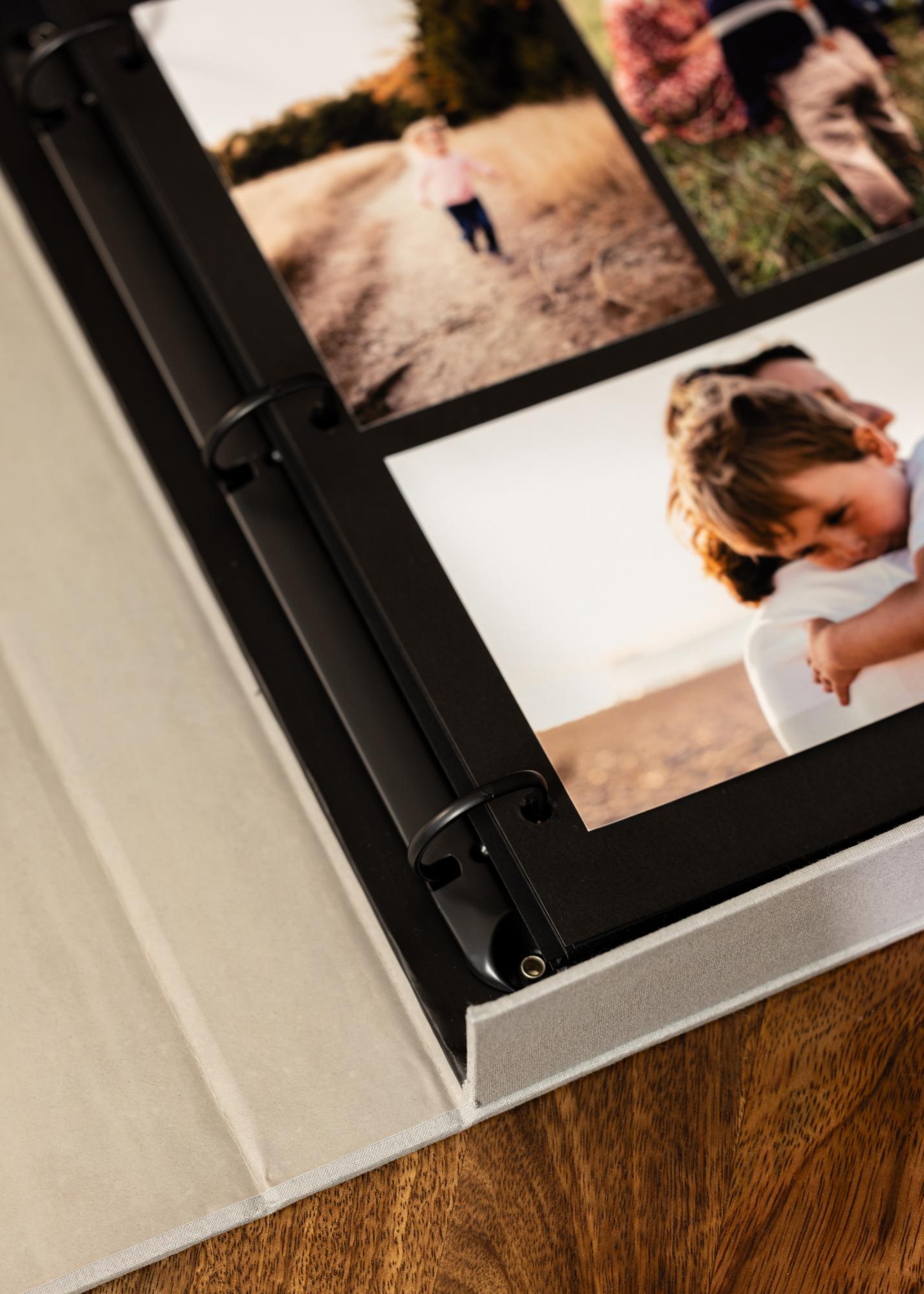Фотоалбумът е проектиран като ексклузивна кутия, която отваряте, за да получите достъп до съдържанието. Вътре в албума е поставен рингов механизъм и 30 черни листа (60 страници), които да запълните с вашите любими спомени. Можете да залепяте снимките си сами, което ви дава голяма гъвкавост и възможност да изразите креативната си страна.