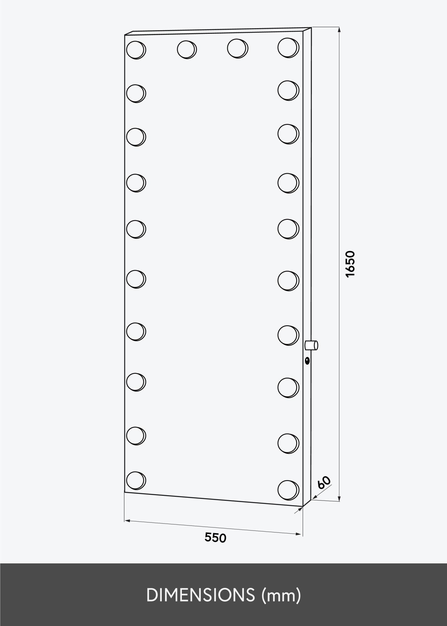 Това правоъгълно огледало с LED осветление е модерен избор за тези, които търсят стилно цялостно огледало. По-големият размер от 55x165 см прави това идеално огледало за спалня и коридор, тъй като лесно можете да се огледате целия, когато избирате дрехи или преди да напуснете дома за деня. На гърба на огледалото има стенни крепежи за монтиране във вертикално положение.