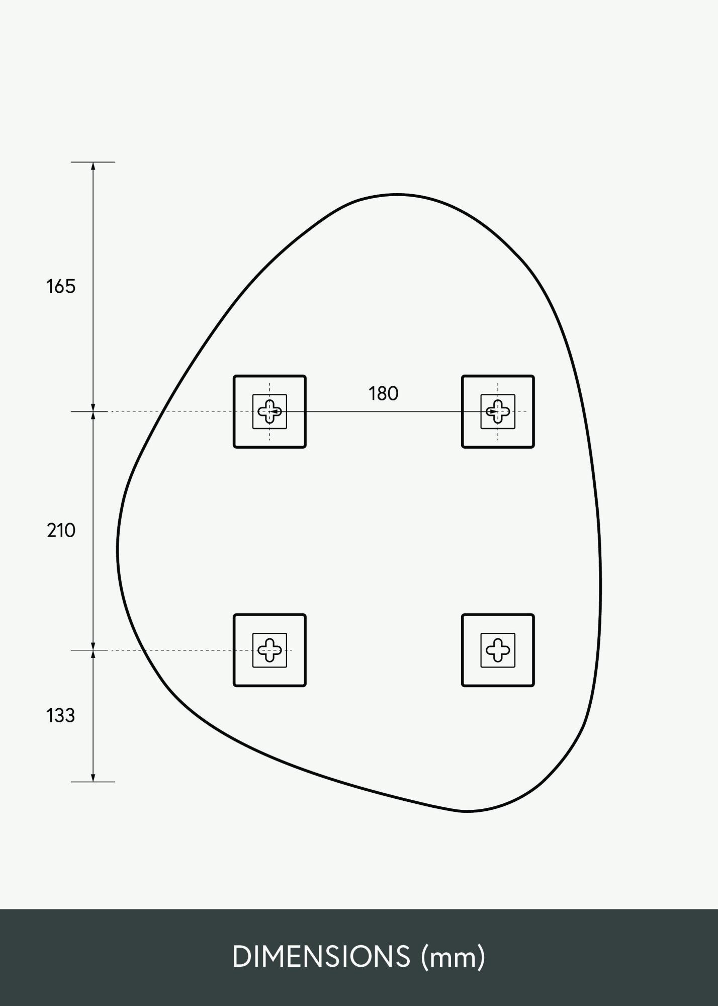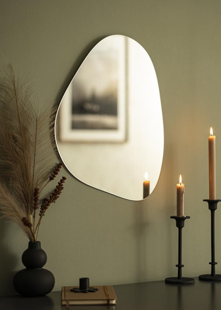 Кръгли и правоъгълни огледала навсякъде – но ако искате огледало, което наистина да привлича вниманието, заложете на асиметричен вариант. Това стеново огледало има уникална форма и елегантен дизайн без рамка. Тънкото огледално стъкло с дебелина само 4 мм още повече подчертава стилния израз.