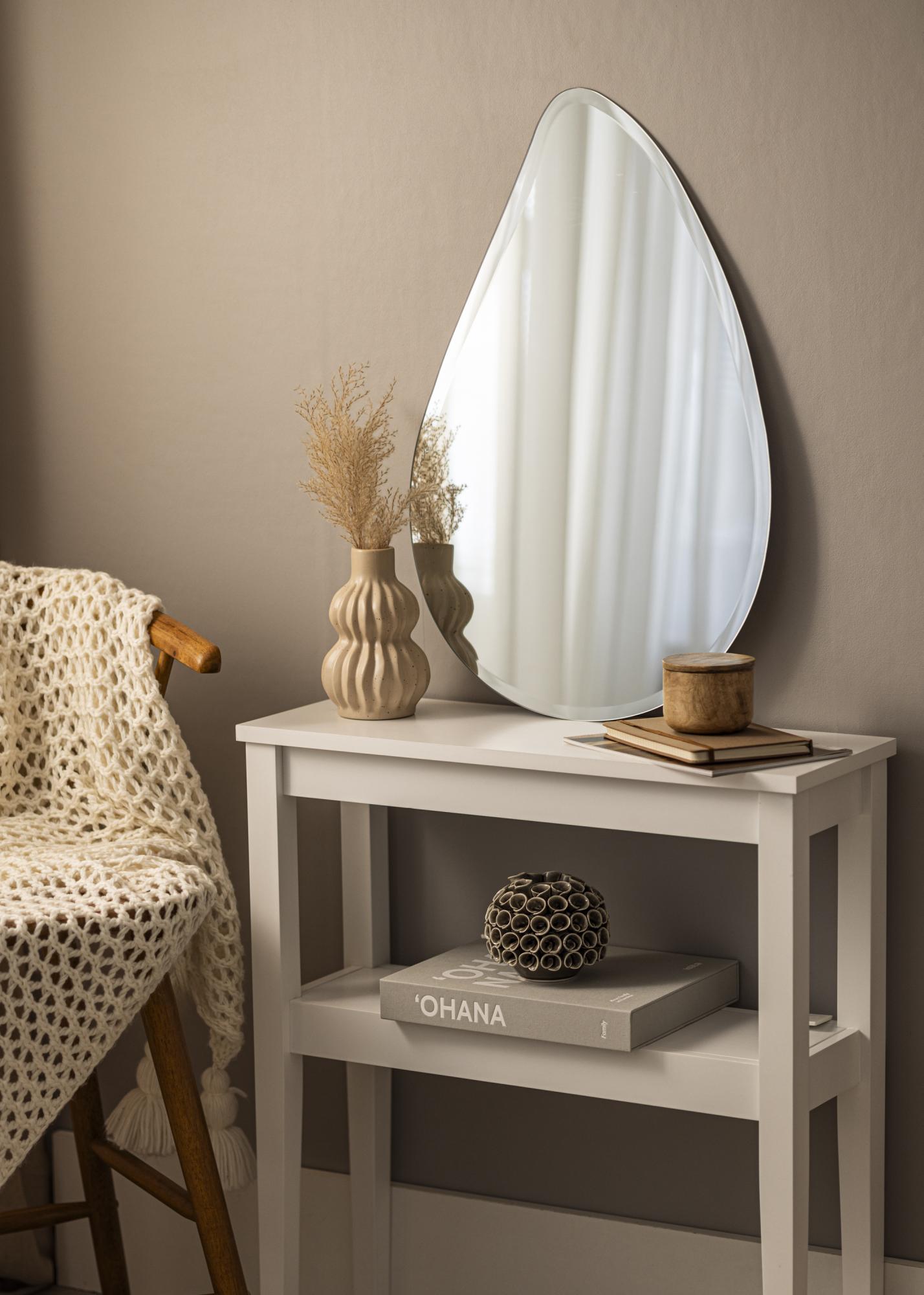 Поставете това елегантно огледало там, където може да бъде както декоративно, така и функционално полезно, например в антрето, спалнята или дневната стая. Това огледало с форма на капка се предлага в няколко размера, от които този вариант е с размери 45x70 см.