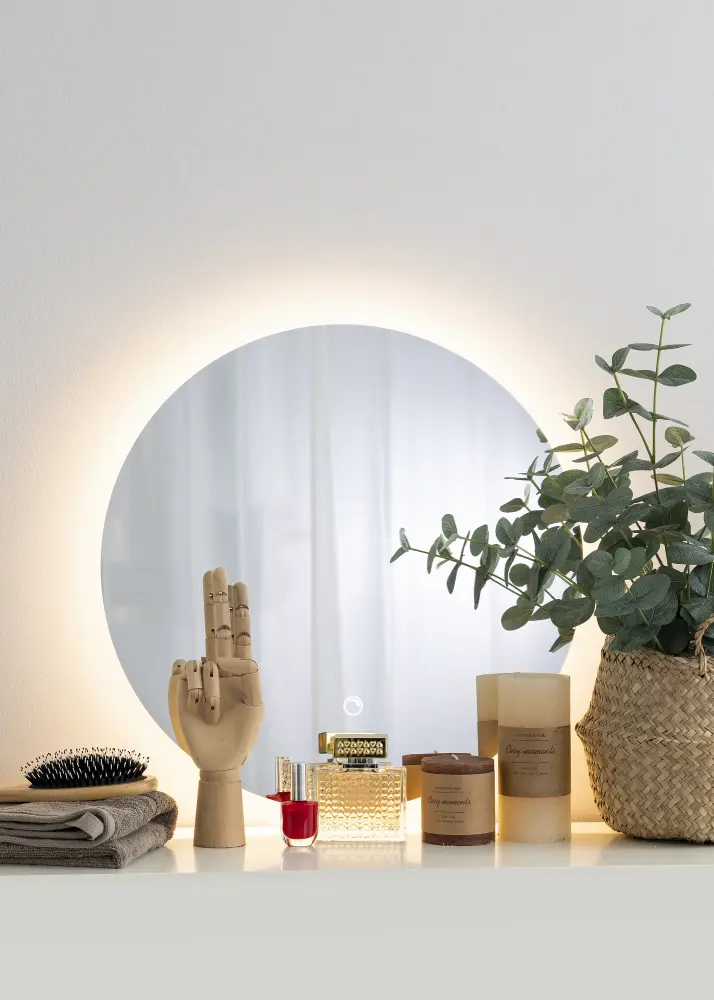LED е енергоспестяващ източник на светлина, който предоставя равномерна и естествена светлина - което прави това огледало перфектно за използване като огледало за баня и като огледало за грим, или защо не и като огледало за коридора! Елегантното огледало е с диаметър 50 см и е само 3 см тънко.
