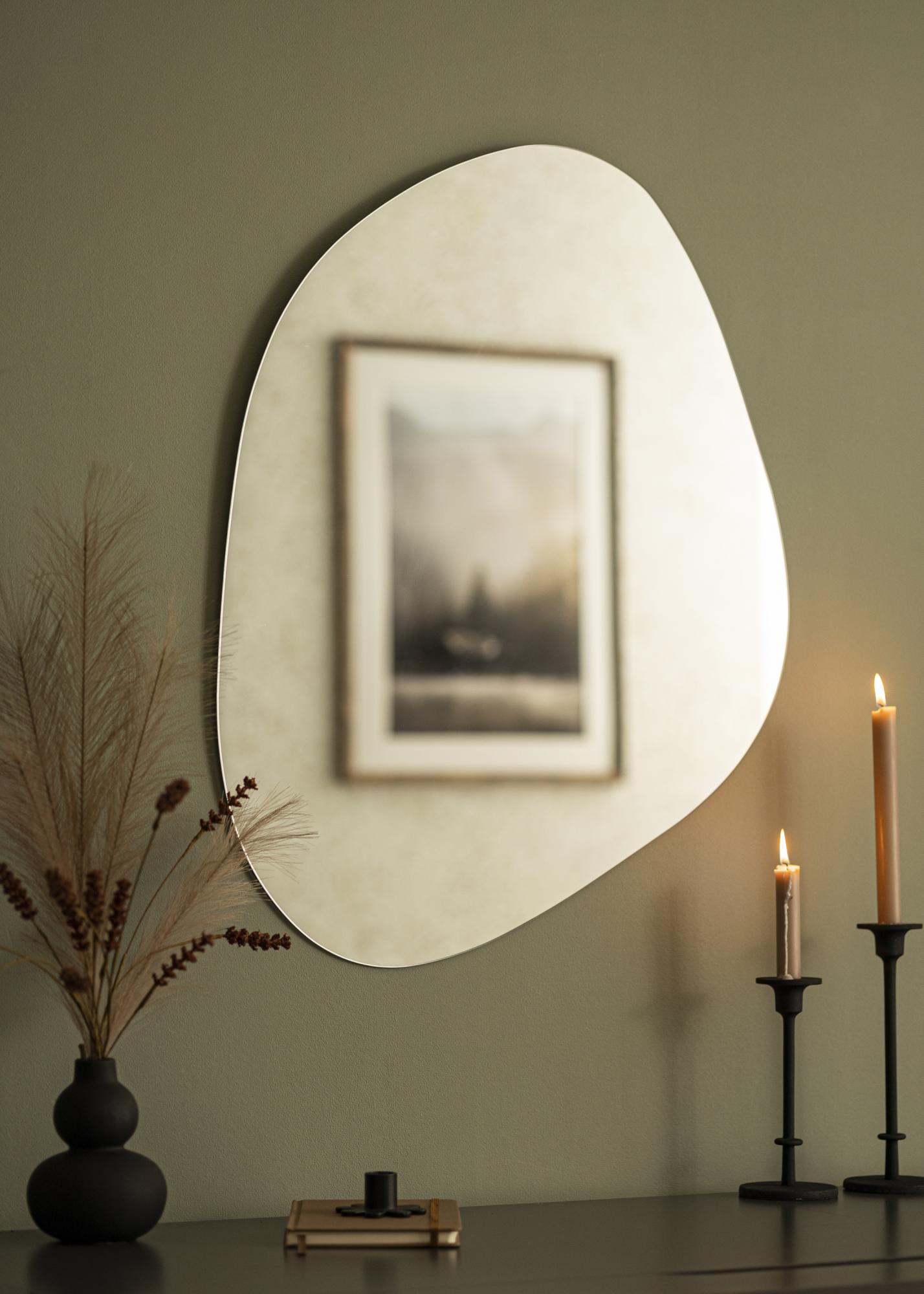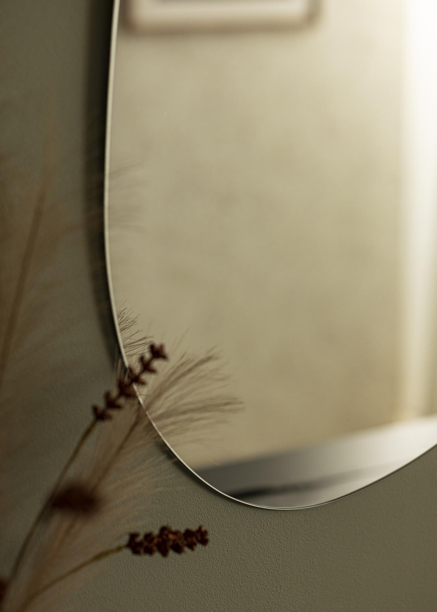 Търсите ли елегантно стеннo огледало за вашия дом? Тогава това огледало е за вас! Огледалото е с дизайн без рамка и тънко огледално стъкло с дебелина само 4 мм и мека форма, която красиво контрастира с правите линии в останалата част от интериора.