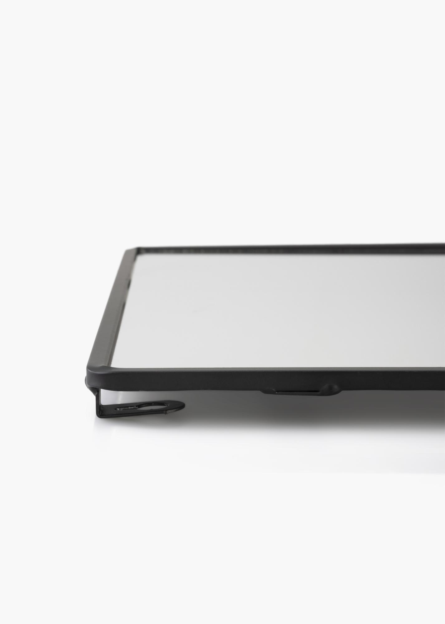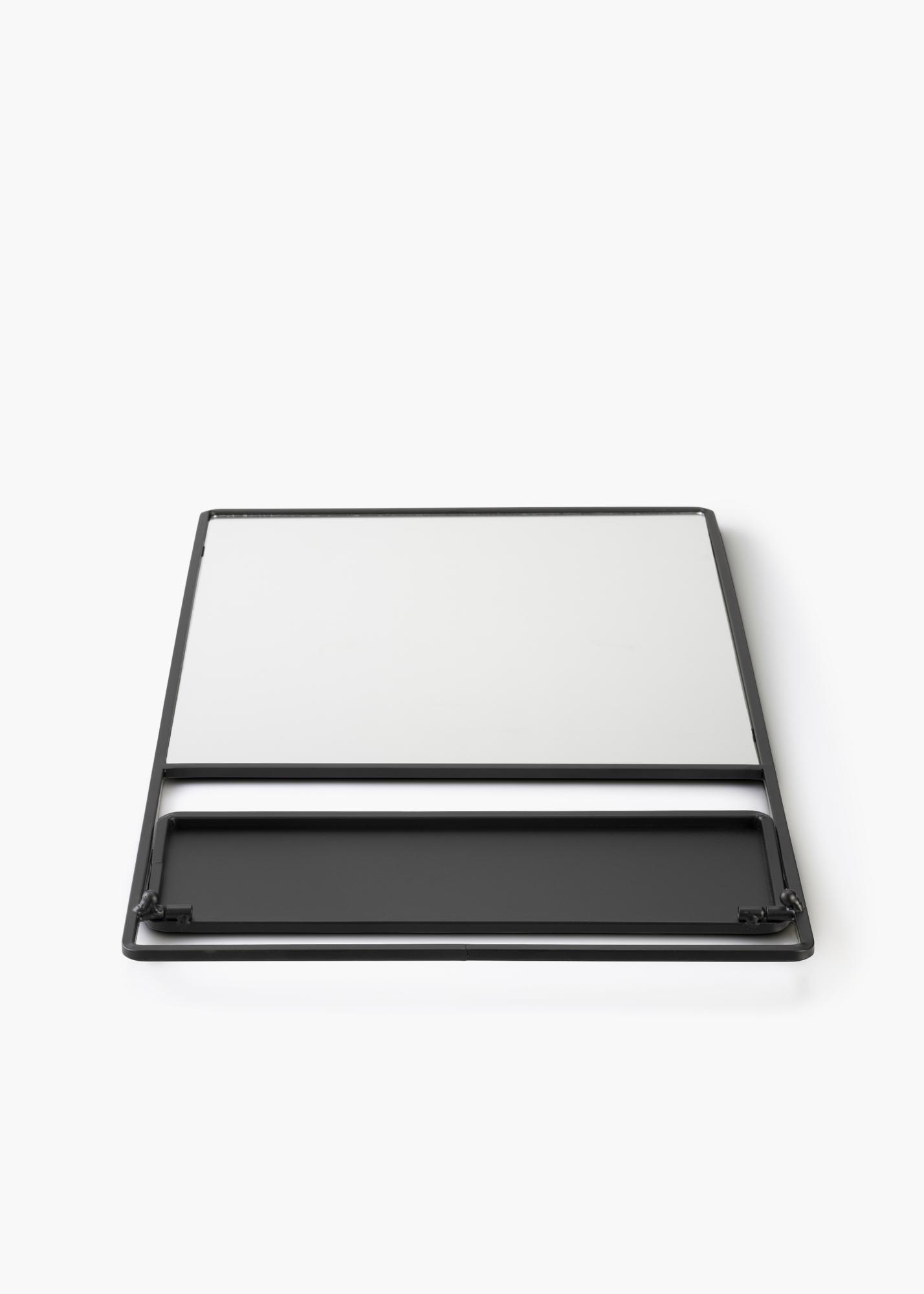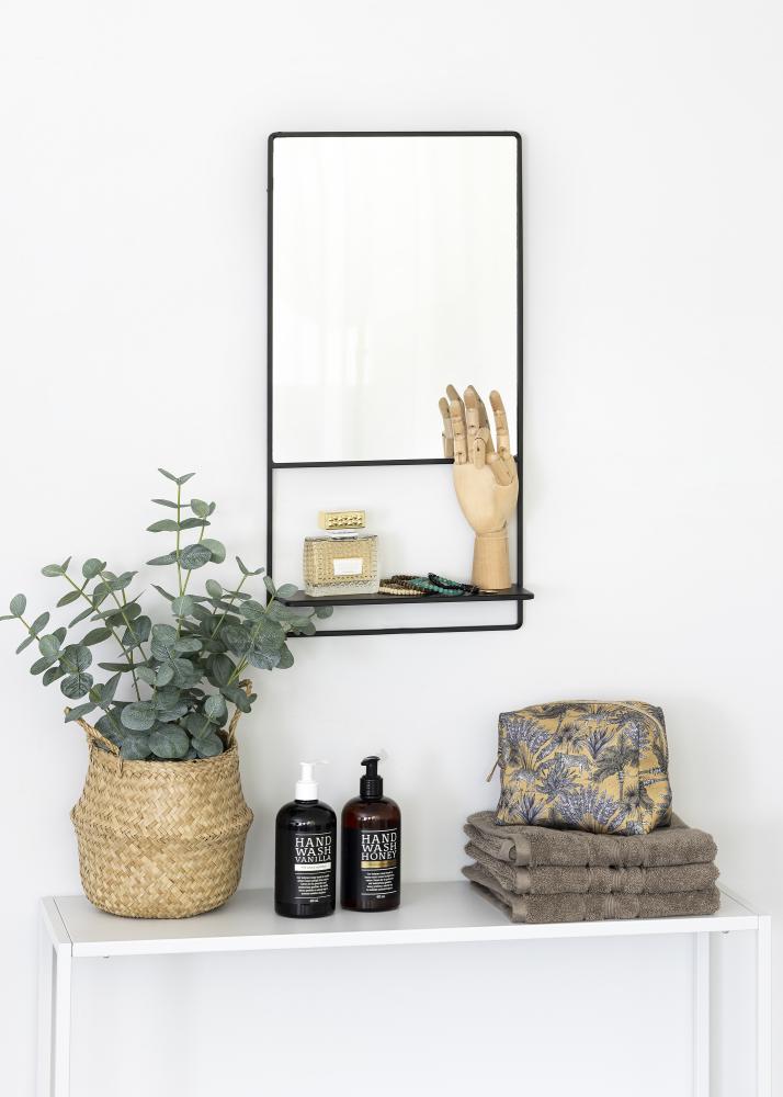 Това стилно стеннo огледало с рафт е шведски дизайн от KAILA. Огледалото е с черен нюанс и е изработено от метал. Самата огледална повърхност е в правоъгълна форма и е обрамчена с черен метален кант. В най-долната част има рафт - идеален за поставяне на хубава декорация или за съхранение на малко грим! Огледалото е с размери 31x60 см и има стенен монтаж.