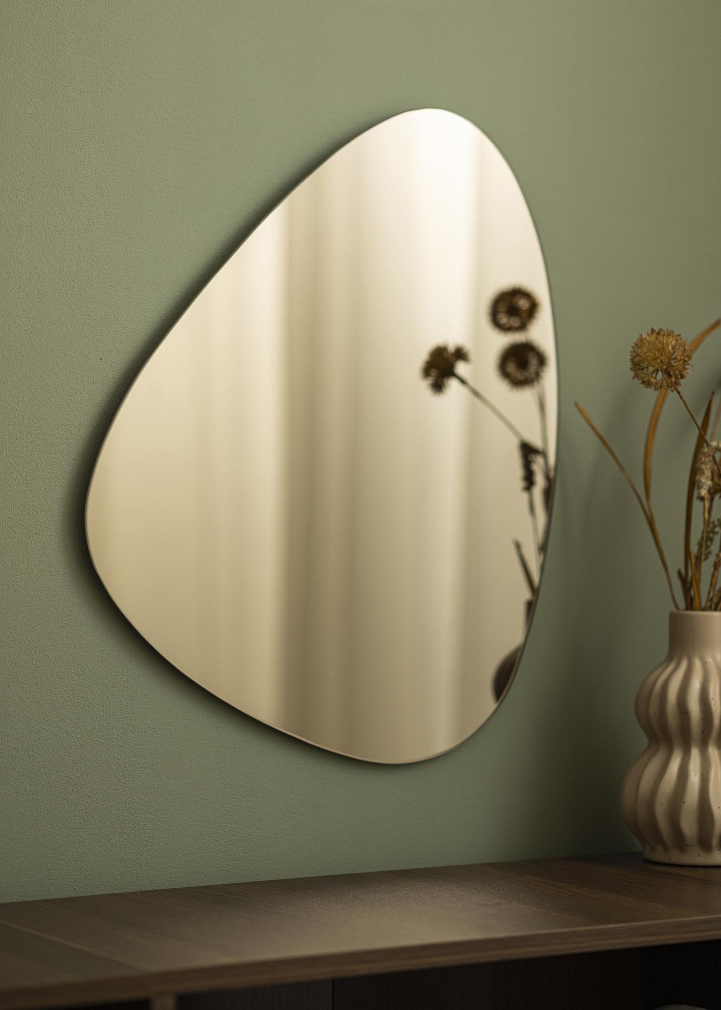 Открийте уникалния чар на нашето модерно и органично оформено огледало, идеално за добавяне на докосване от мекотата на природата във вашия дом. С меките си линии и естествени контури, огледалото напомня за изгладен камък или лист във форма на водна капка, което създава хармонична атмосфера във всяка стая.