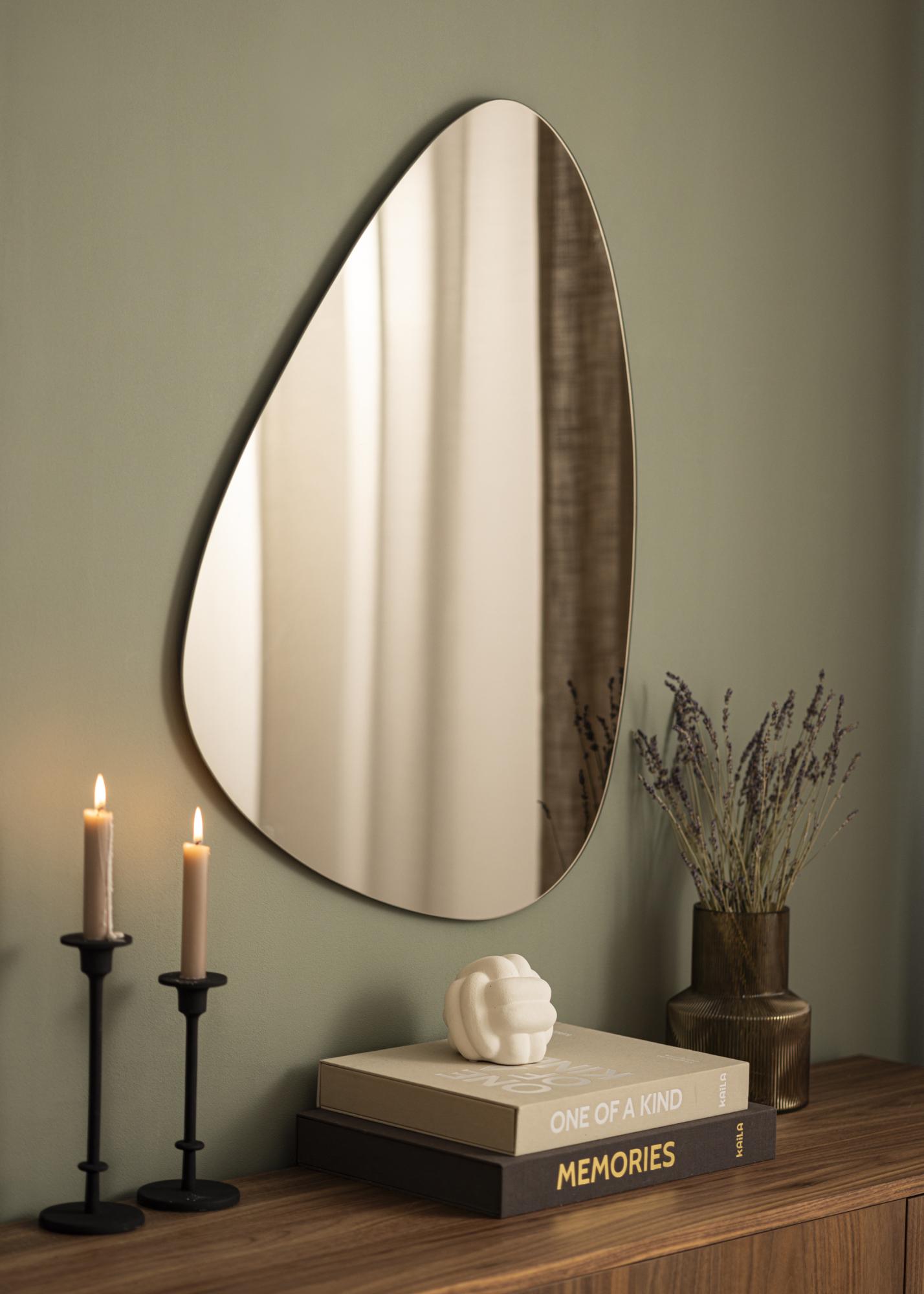 Това асиметрично огледало ще бъде наистина стилен и модерен декоративен елемент във вашия дом! Освен интересния яйцевиден дизайн, това огледало има и стилно бронзово тонирано огледално стъкло, което допълнително подсилва модерното излъчване и красиво хармонизира с много различни цветови схеми. Меката форма в комбинация с факта, че огледалото е много тънко и няма рамка, придава на огледалото рядко елегантно и нежно усещане. Перфектно като функционална и модна декорация за стена в дневната, коридора или спалнята.