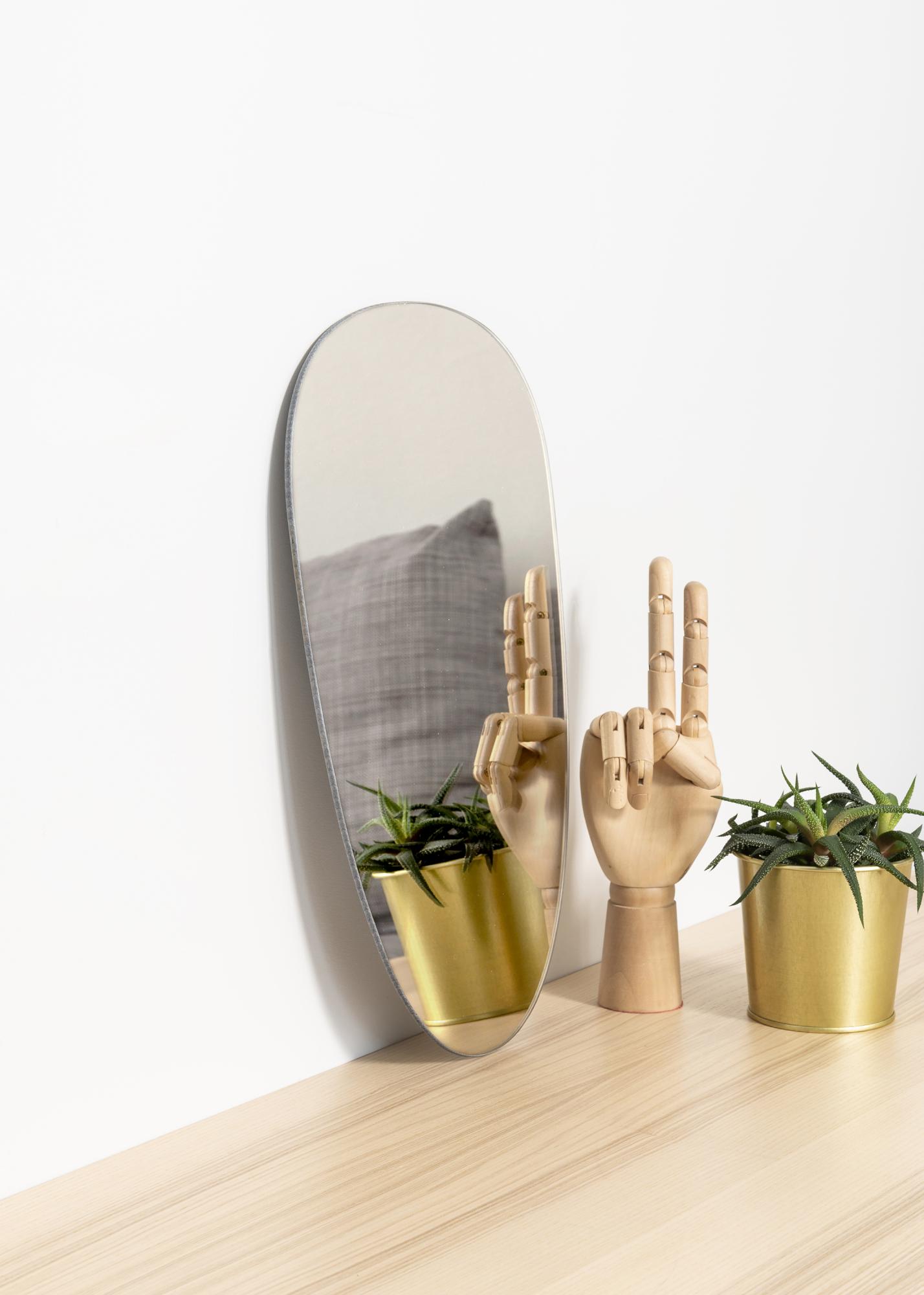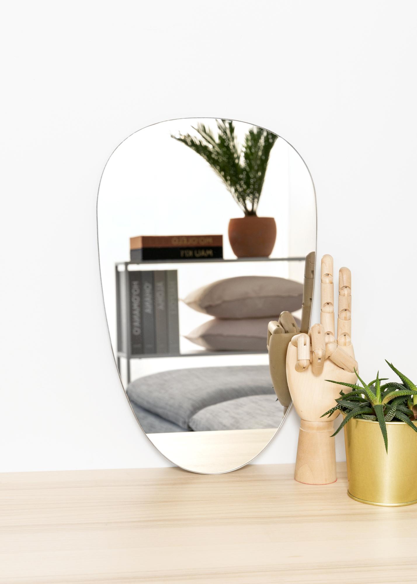 Едно огледало с вълнуваща и малко по-различна форма създава модерен впечатление във вашия дом! Това асиметрично огледало е само 4 мм тънко и няма рамка, което му придава много изящен и елегантен външен вид.