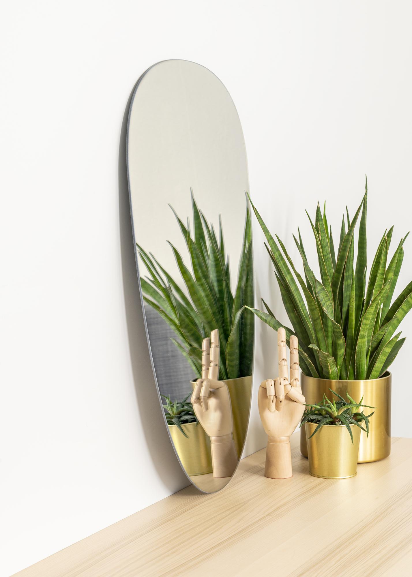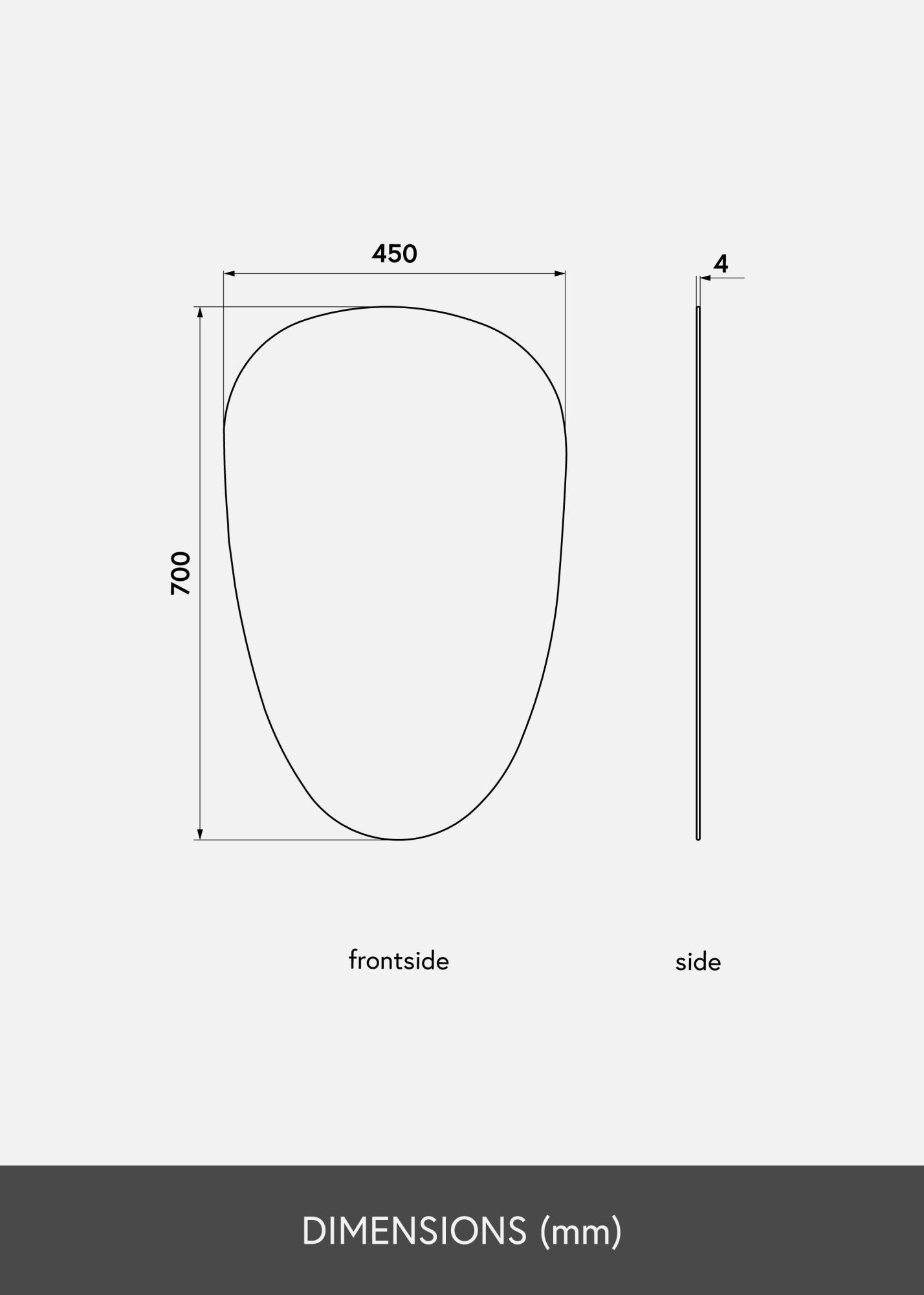 Едно стилно и интересно огледало като това ще бъде модерно допълнение към вашия дом! Огледалото има нежна и асиметрична форма, която най-добре може да се опише като неравномерно овална. Освен това, огледалото е много тънко и няма рамка, което допълнително усилва неговото елегантно излъчване.