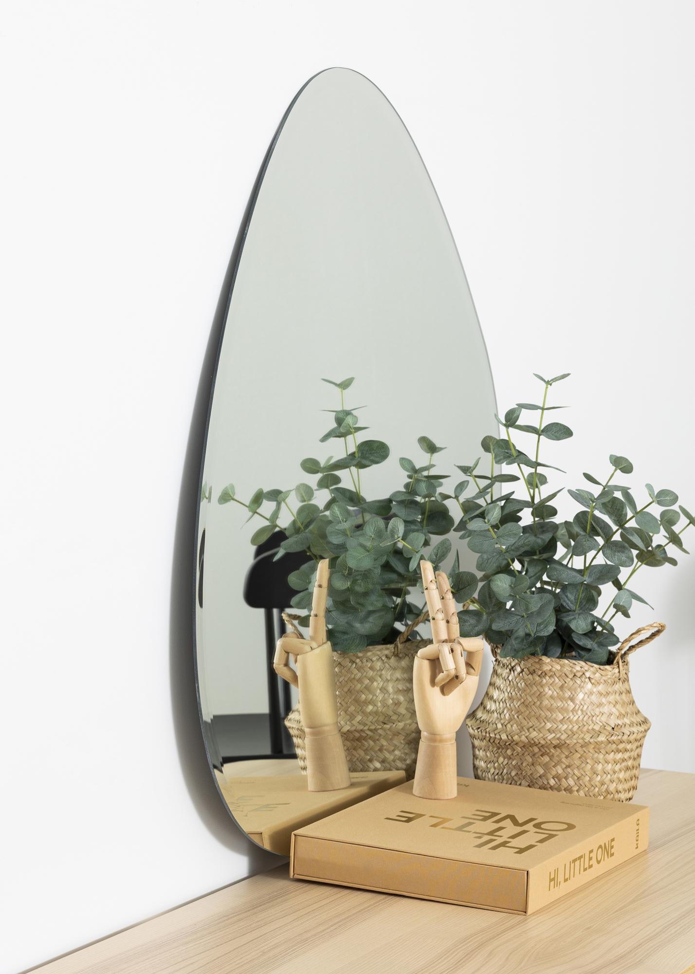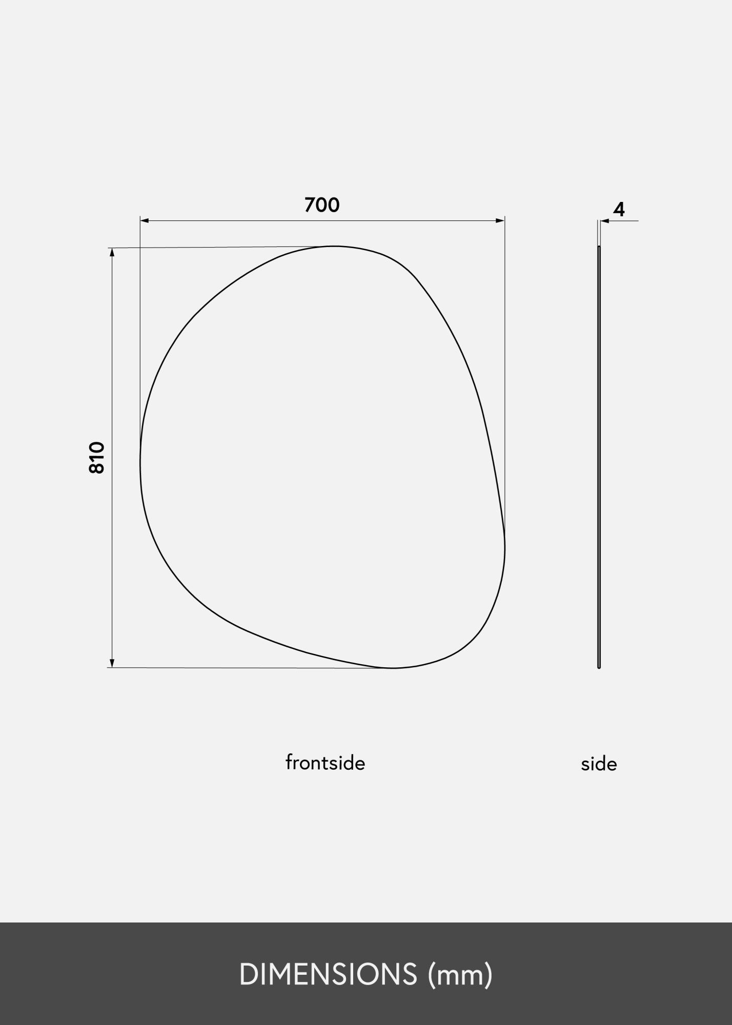 Това стенни огледало от KAILA има елегантна асиметрична форма, която наподобява капка. Огледалото е много тънко и няма рамка, което в комбинация с луксозно фасетирания ръб още повече усилва елегантния и модерен вид. Това е много декоративно стенни огледало, което гарантирано привлича вниманието, в която и стая да бъде поставено – в хола, както и в коридора или спалнята. Огледалото е с размери 70x81 см.