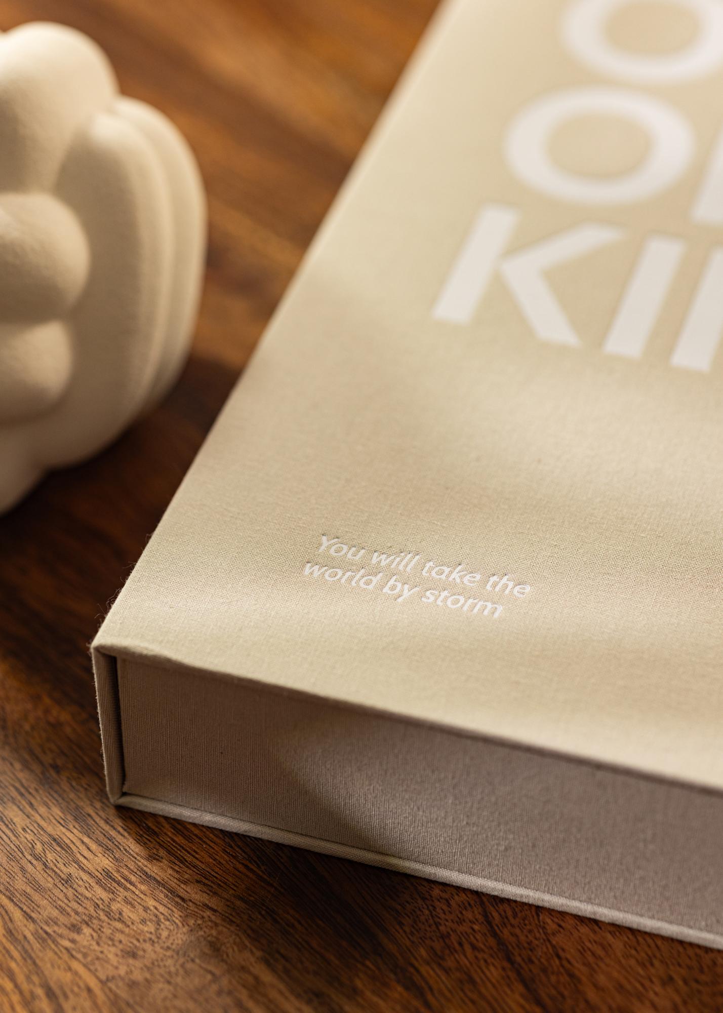 Проявете вашите снимки и ги съхранявайте в красив фотоалбум за масичка за кафе! Този фотоалбум от KAILA е обвит в сива текстил и е проектиран като луксозна кутия, което наистина му придава изискано усещане. Най-хубавото е, че този фотоалбум изглежда също толкова стилно като елемент на интериора! На предната част на фотоалбума е отпечатано заглавието „ONE OF A KIND“ с големи бели букви и подзаглавието „You will take the world by storm“, което прави този албум перфектен за красиви снимки от детството или за подарък на някой специален, или разбира се за вашите собствени чудесни фотоспомени.