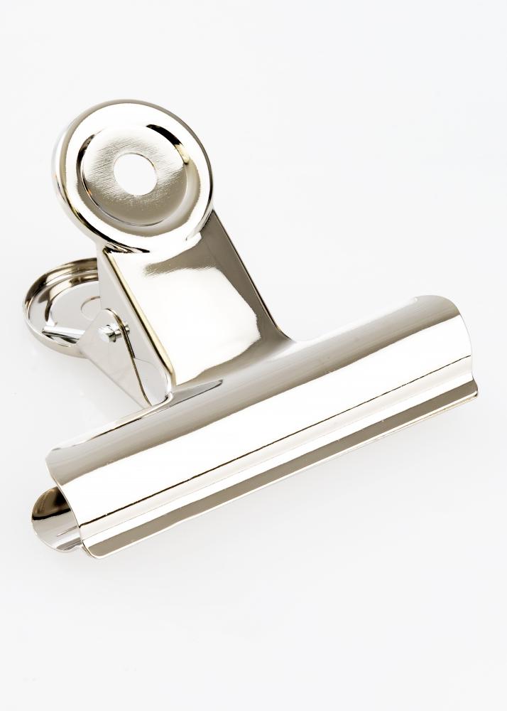 Тази метална щипка има модерен и блестящ сребърен финиш и е идеалният инструмент за създаване на модерен и минималистичен начин за окачване на плакати или принтове. Гъвкавото и здраво отваряне на щипката позволява да закачите изображения с различна дебелина, дори и най-тънката хартия. А ако имате голям плакат, просто използвайте две метални щипки. Дизайнът на щипката за плакати е изчистен и стилен, а отворите в кръглия връх на щипката правят монтирането на стената лесно и удобно – всичко, което ви е необходимо, е малък гвоздей или винт.