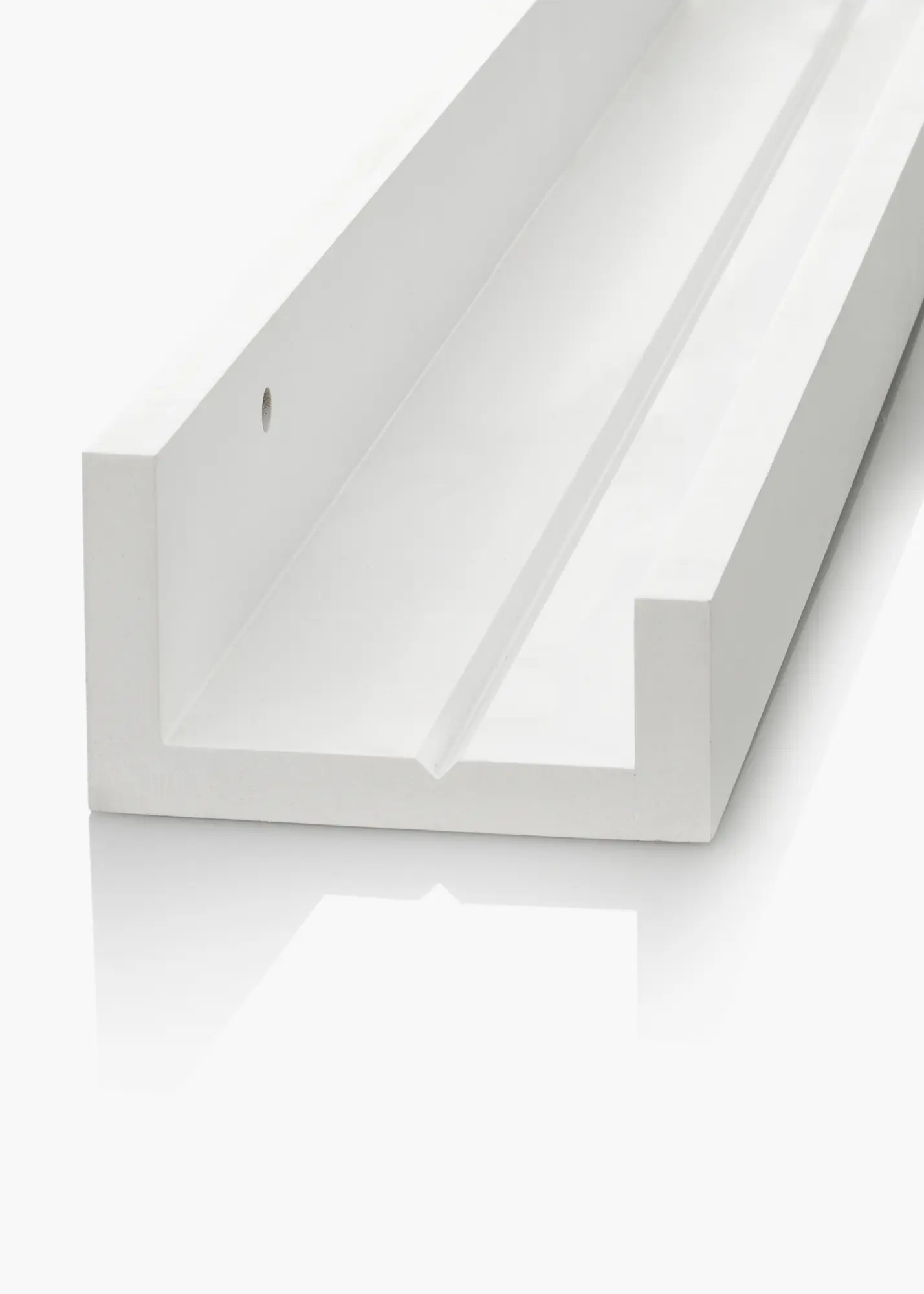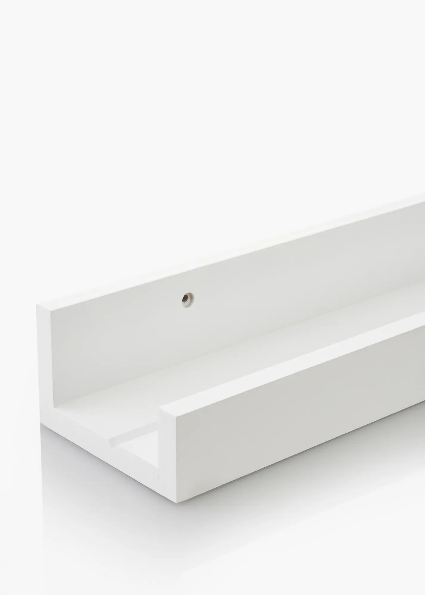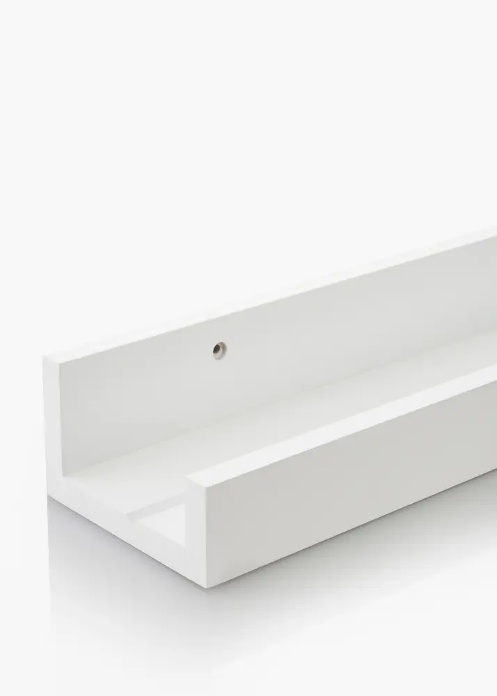 С практична рафт за картини можете лесно и стилно да показвате и променяте своите картини! Тази елегантна рафт за картини е изработена от MDF и е боядисана в бяло с красива, полу-лъскава повърхност. Дизайнът е изчистен с опростени, прави линии и вечна минималистична усещане. В средата на плота на рафта има изрязана прорез, която поддържа вашите картини и им придава перфектен ъгъл, когато са наклонени към стената. Рафтът за картините също така има предварително пробити дупки и в опаковката са включени подходящи винтове и дюбели, за да направи всичко още по-лесно!
