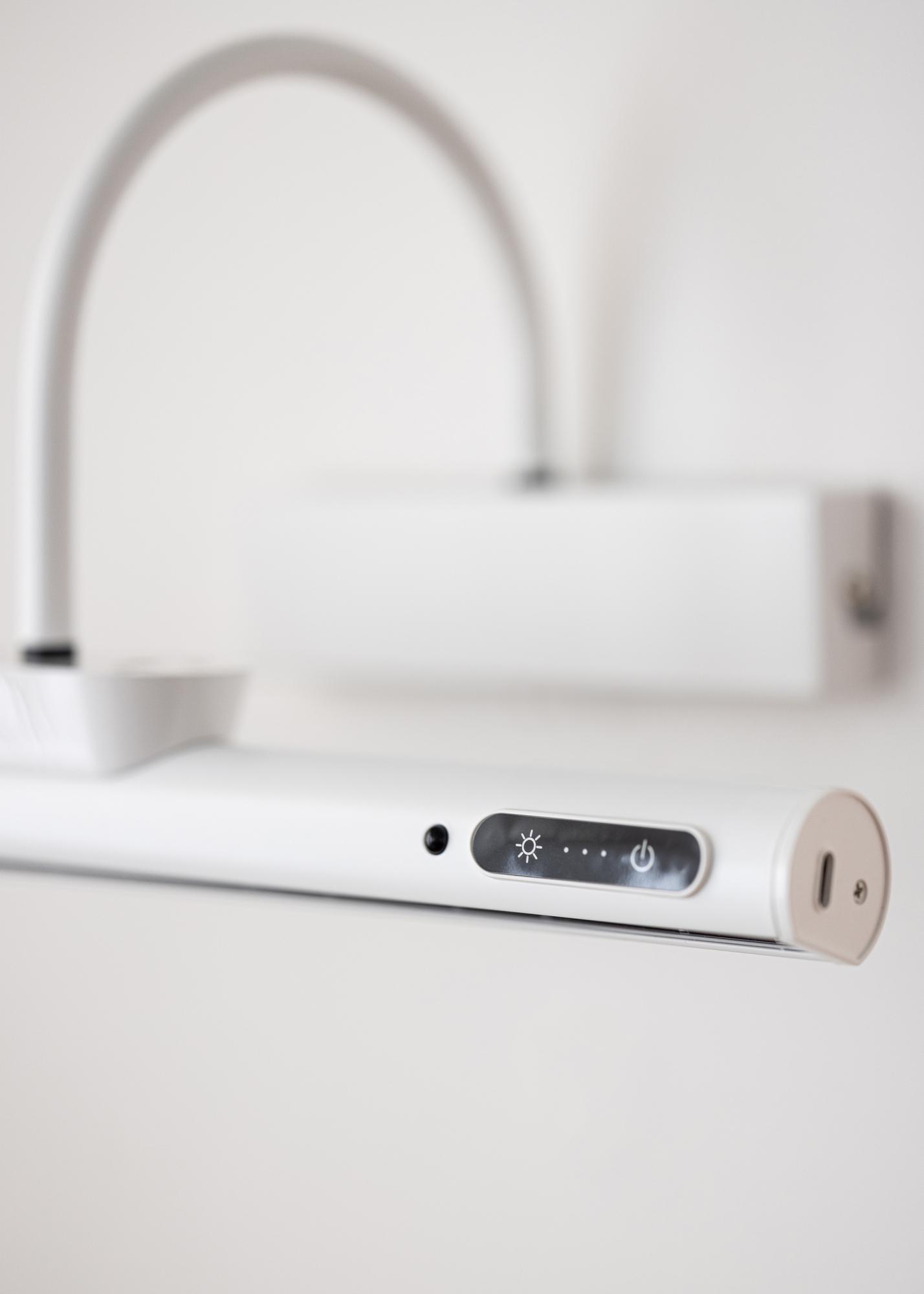 Белият завършек на това осветление за картини го прави подходящо за повечето интериори, а с батерийното си захранване е отличен избор за тези, които желаят свободата да позиционират осветлението, където искат, без да мислят за електрически контакти. Лесно за монтиране и практично в своята употреба, това е идеално решение за осветяване на любимите ви произведения на изкуството.