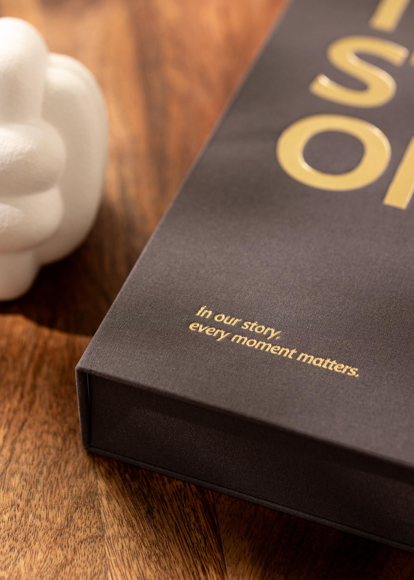 The Story of Us е перфектният фотоалбум за събиране на спомени от вашата сватба и любовна история. Със своя елегантен кремав дизайн и формат за масичка за кафе, той ще бъде красива част от интериора, като същевременно запазва вашите най-значими моменти. Албумът има 60 черни, безкиселинни страници, където можете да поставите вашите снимки и да създадете безвременна история за вашата любов.