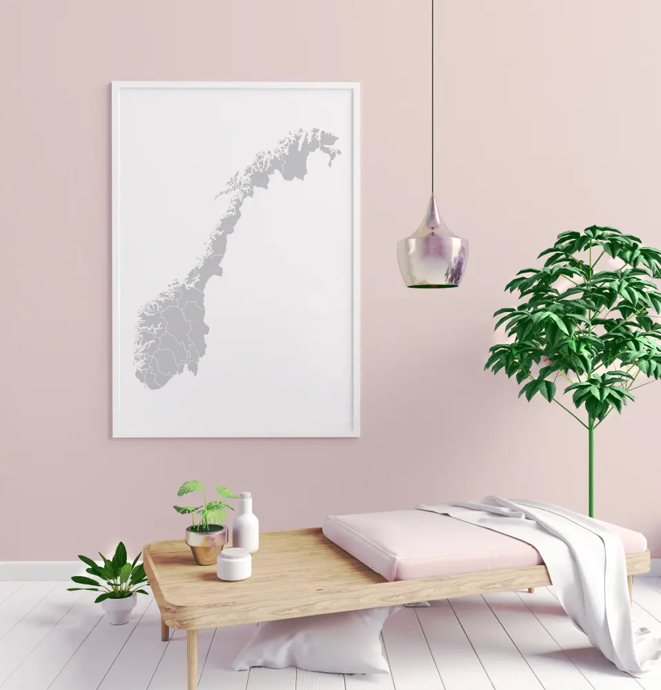 Нека топлите ви чувства към Норвегия се отразят във вашия интериор! Тук имаме стилна графическа карта на страната, която гарантирано ще направи стената красива! Картата се предлага в цветовете син, сив, зелен, розов, черен с бял фон, бял с черен фон, както и в цветовете на дъгата. Изберете между 8 различни размера и допълнете с подходяща рамка!