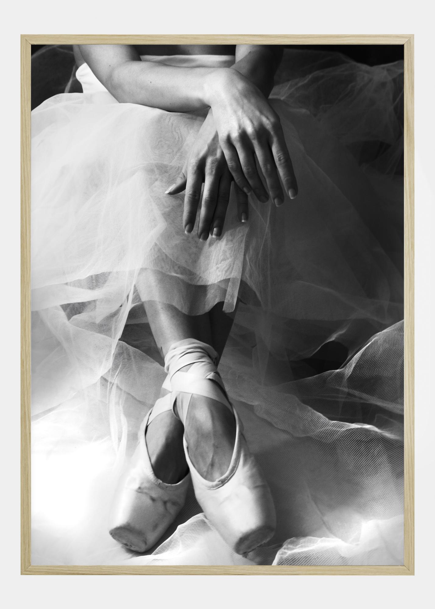 Елегантен плакат с балерина, която позира седнала преди танц. Следвайте кръстосаните крака и ръце, докато тя чака реда си. Този плакат е идеален за неутрална стена.