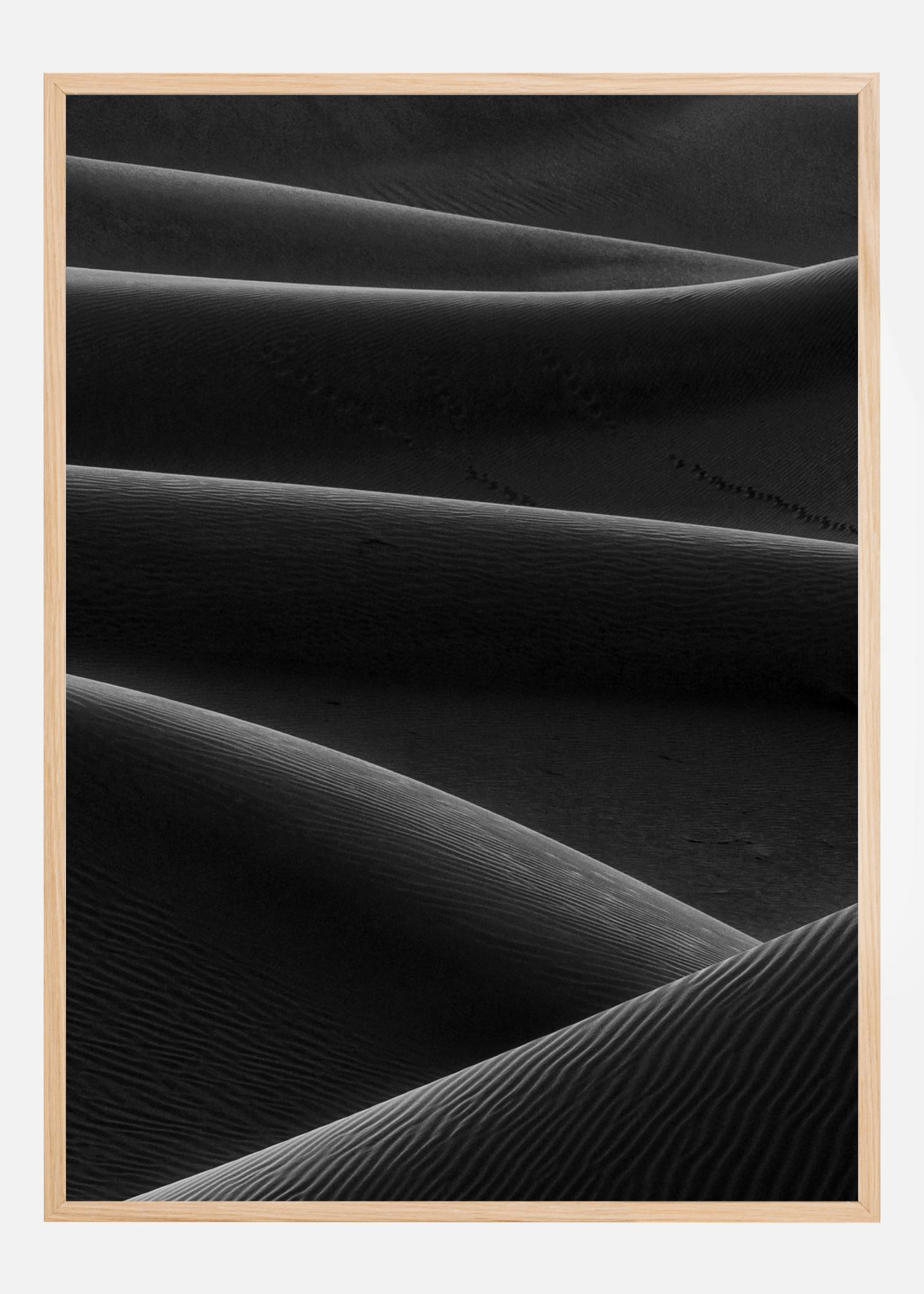 Един невероятен черно-бял постер с пясъчни дюни в пустинята. Вълнообразният пясък е подчертан от естествената светлина, която пада върху пясъчните дюни и създава ефект на ръбове. Един невероятен, но тих образ за окачване на бяла стена, за да придаде усещане за безкрайност.
