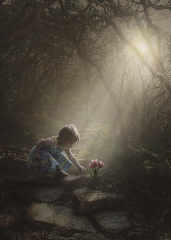 Красива графична картина, която те пренася в приказен свят с магическа светлина, вълшебна гора и малкото момиче на изследователско приключение. Една мечтателна плакат, който става все по-добър и по-добър, колкото по-голям става.