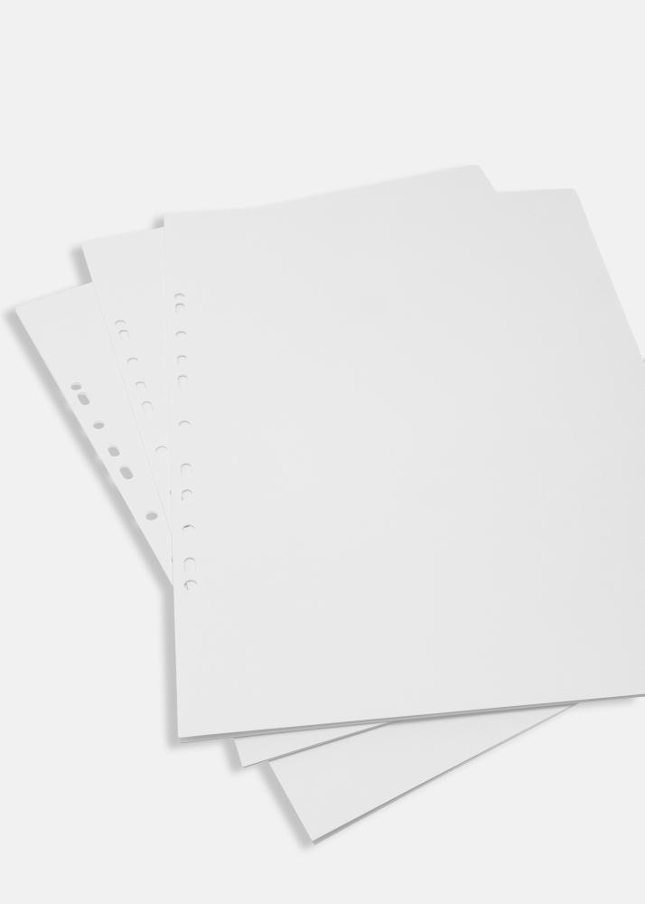 10 бели безкиселинни картонени листа във формат A3. Перфектни за събиране на изрезки от вестници, рецепти и подобни.