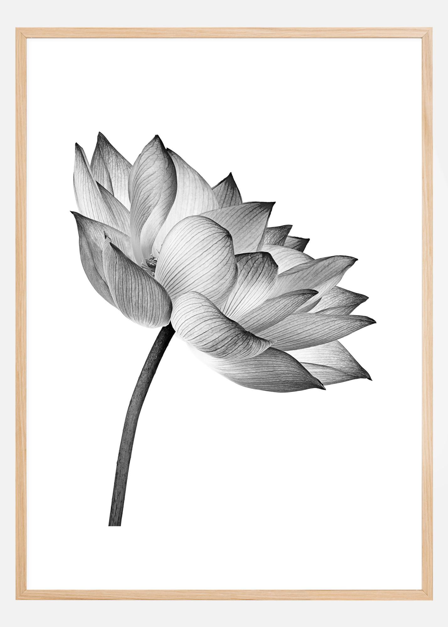 Графичен постер в черно и бяло на разцъфнал лотос върху бял фон. Елегантен и минималистичен постер, който лесно се комбинира с други любими на по-голяма стена с картини.
