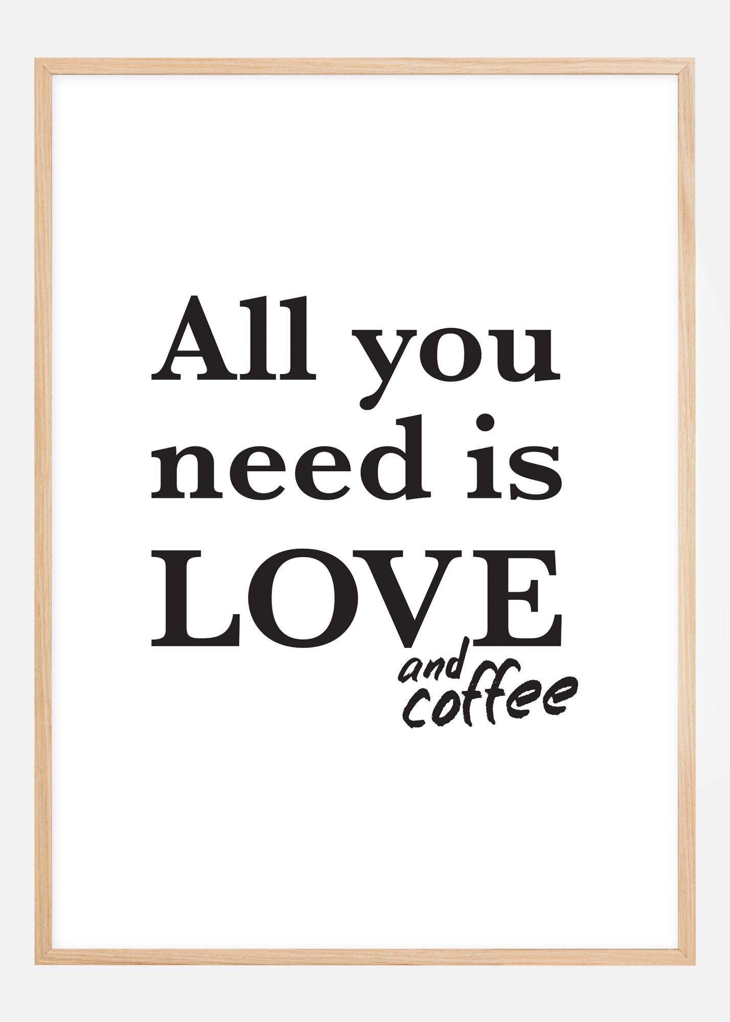 Всичко, от което се нуждаете в живота, е любов. И кафе, разбира се! Този чаровен плакат е красив елемент в кухненския интериор у дома или на работа. Постерът е бял с черен печат под формата на текста "Всичко, от което се нуждаете е любов и кафе". Остава впечатление, че "и кафе" е написано допълнително. Черно-белият дизайн се комбинира добре с красива рамка в любимия ви цвят.