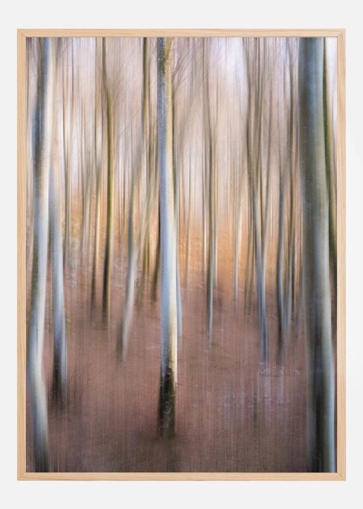 Красива, но мистериозна картина с магическа горска земя. С естествената светлина, която просветва през дърветата, магическите пастелни цветове подчертават високите дървесни стволове. Чуйте тишината на гората, когато закачите тази картина в дома си.