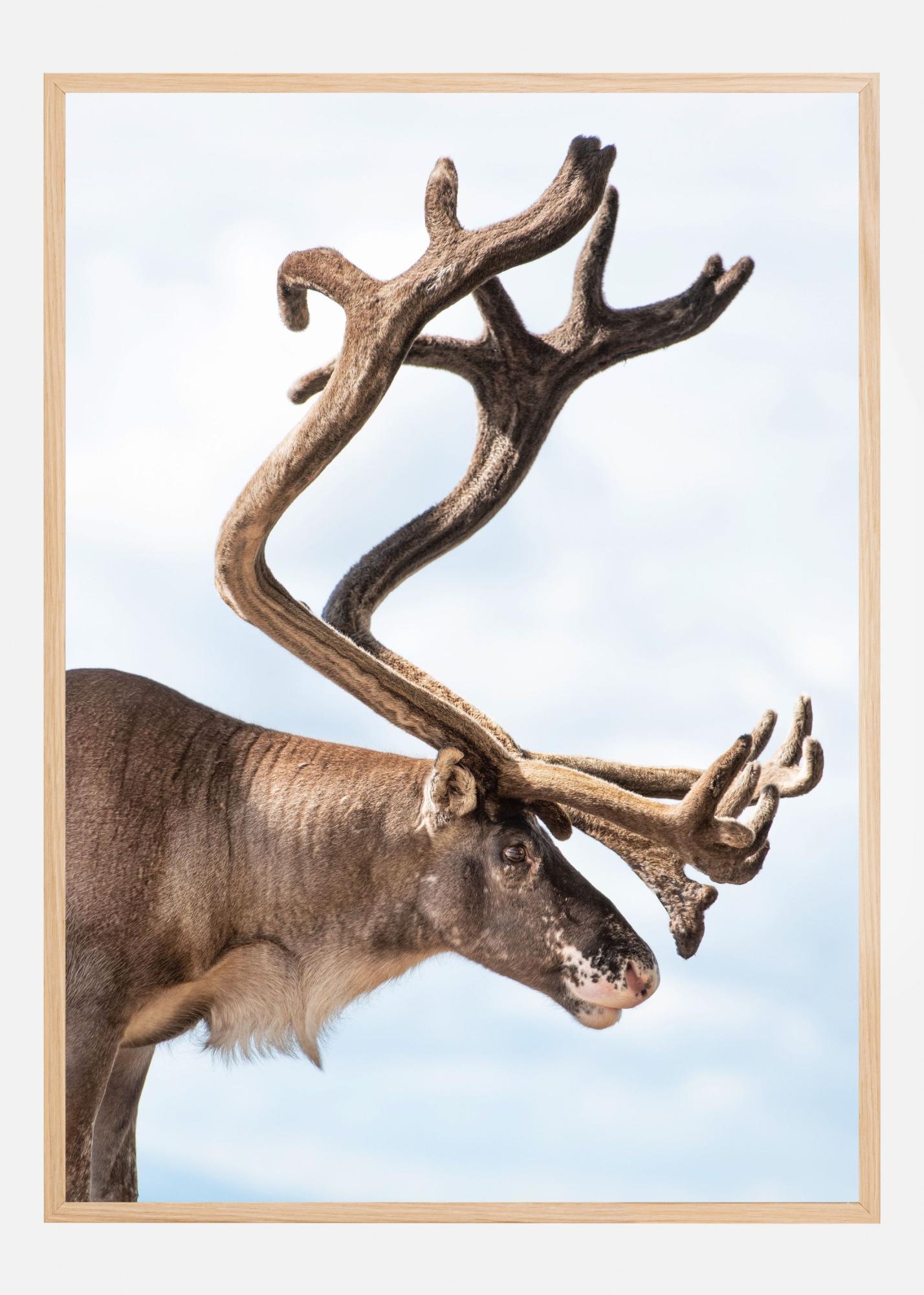 Този мотив изобразява величествен елен в профил с впечатляващи, разклонени рога на фона на нежно и светло небе. Картината носи вдъхновение от природата и има северен характер, който е идеален като постер или афиш за всекидневната, спалнята или планинската хижа. Детайлната фотография създава усещане за дивата природа, спокойствие и сила – естествен избор за всеки, който обича животински мотиви, скандинавски дизайн и модерни природни принтове.