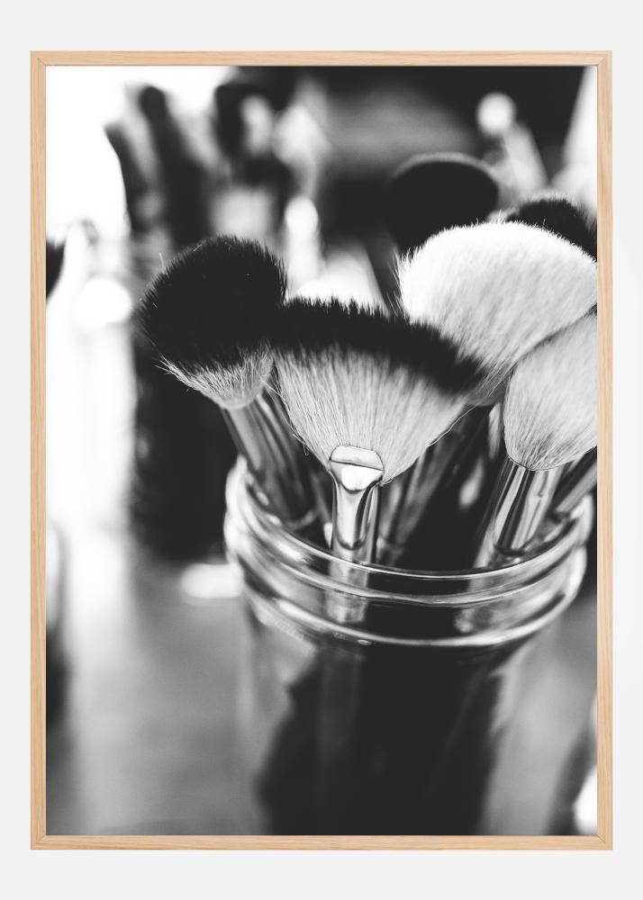Един артистичен, но забавен принт на стъклен буркан, пълен с четки за грим. Този впечатляващ черно-бял постер показва няколко четки в различни размери. Почувствайте колко меки са тези четки, когато закачите този принт на стената в спалнята си.