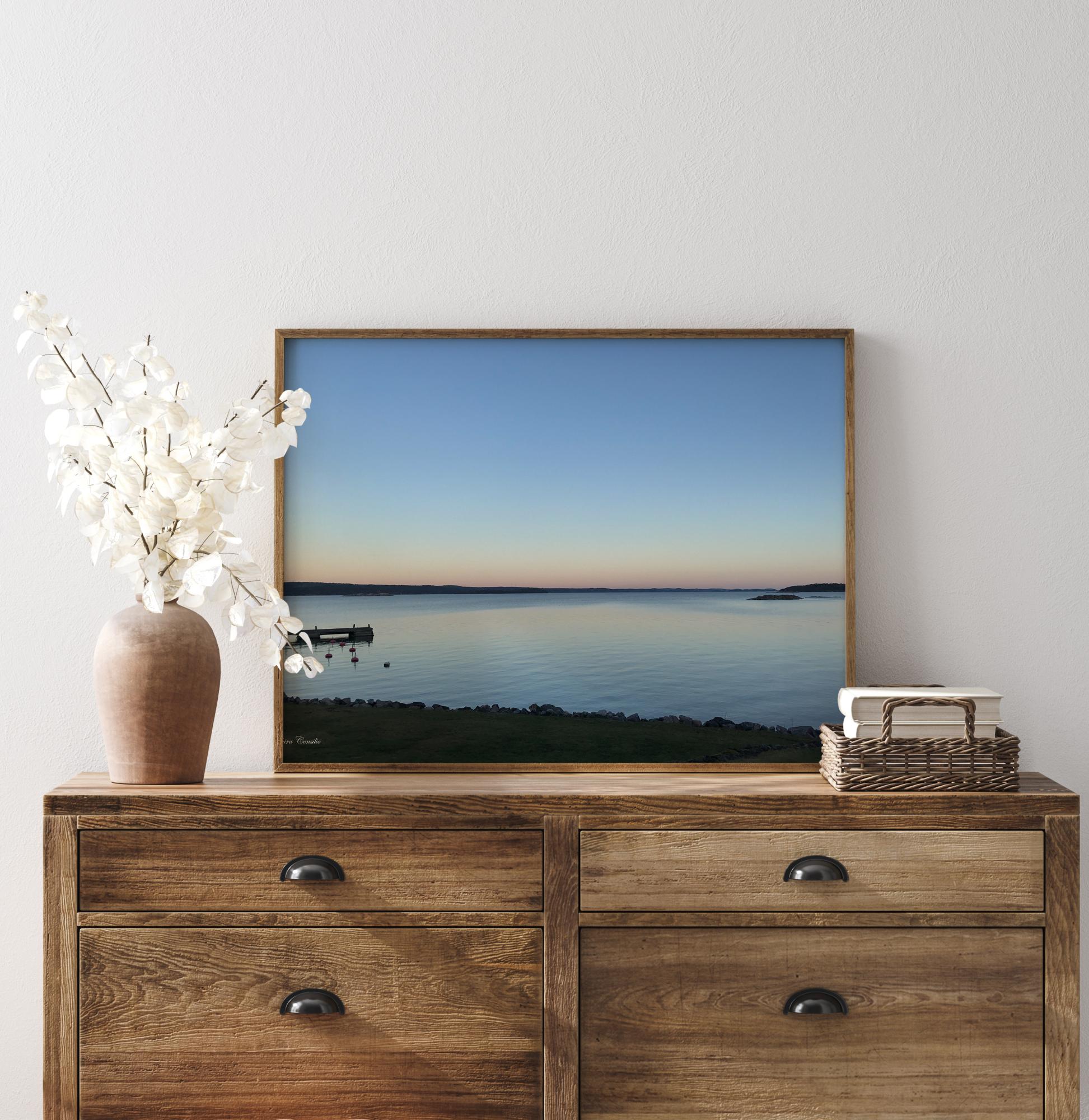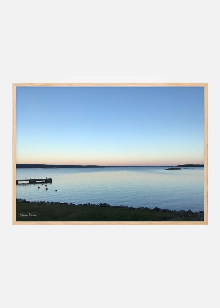 Фотографски постер на шведския архипелаг с неговите острови и скали в красива залезна светлина. Едно кейче с прилежащите му плаващи буйове придава малко допълнителен живот на изображението. Един прекрасно успокояващ постер, създаден от фотограф Сафира Консилио.