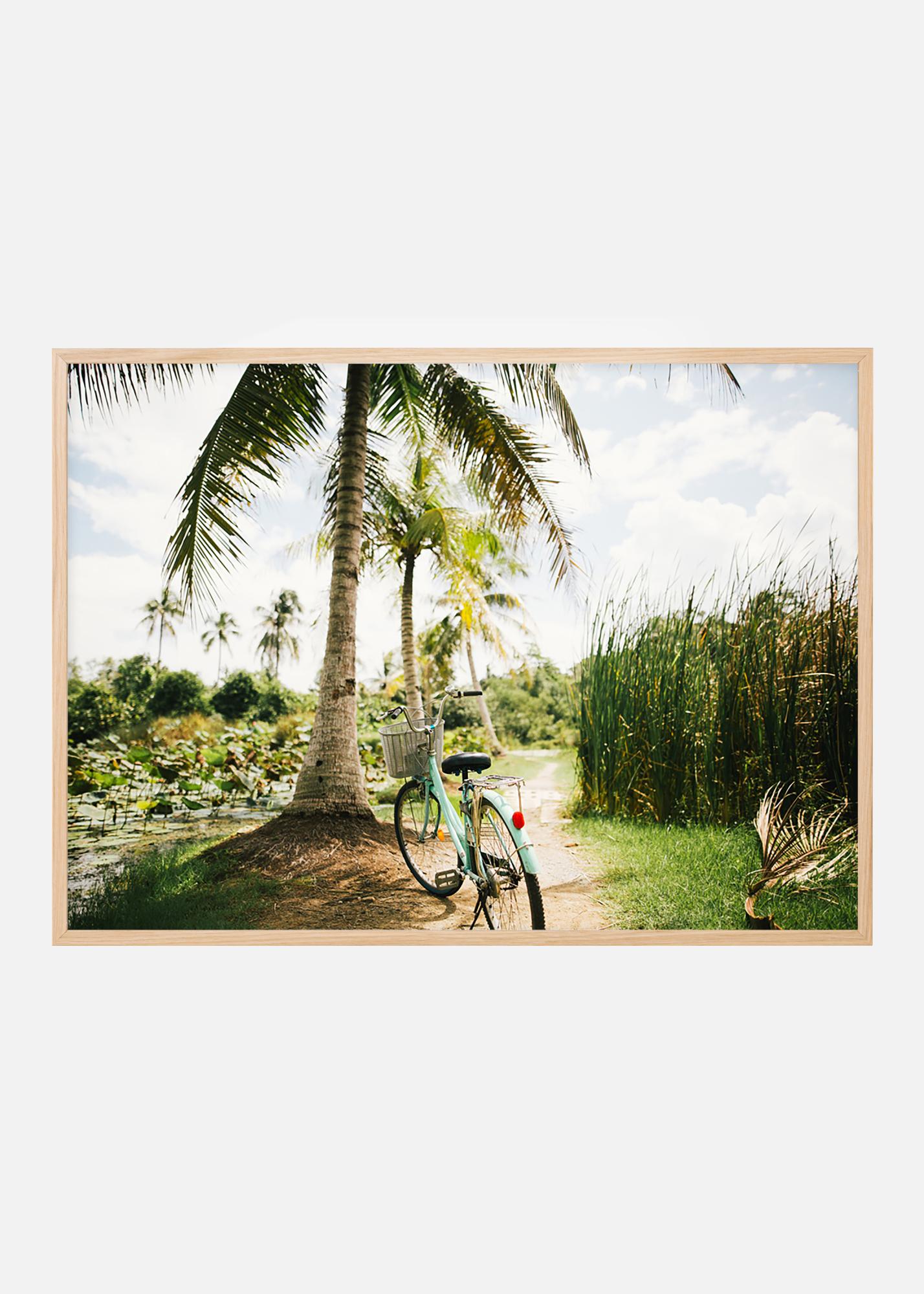 Постер, който навява мисли за Карибите и мързеливи дни на слънце с пясък между пръстите на краката. Помислете и на тази образа през снежно-сив зимен ден и мечтайте. Принтът е в зелено-сини тропически нюанси с палми, които да украсяват стени във всякакви типове стаи, нуждаещи се от малко слънце. Комбинирайте с други картини на същата тема за стена с картини.