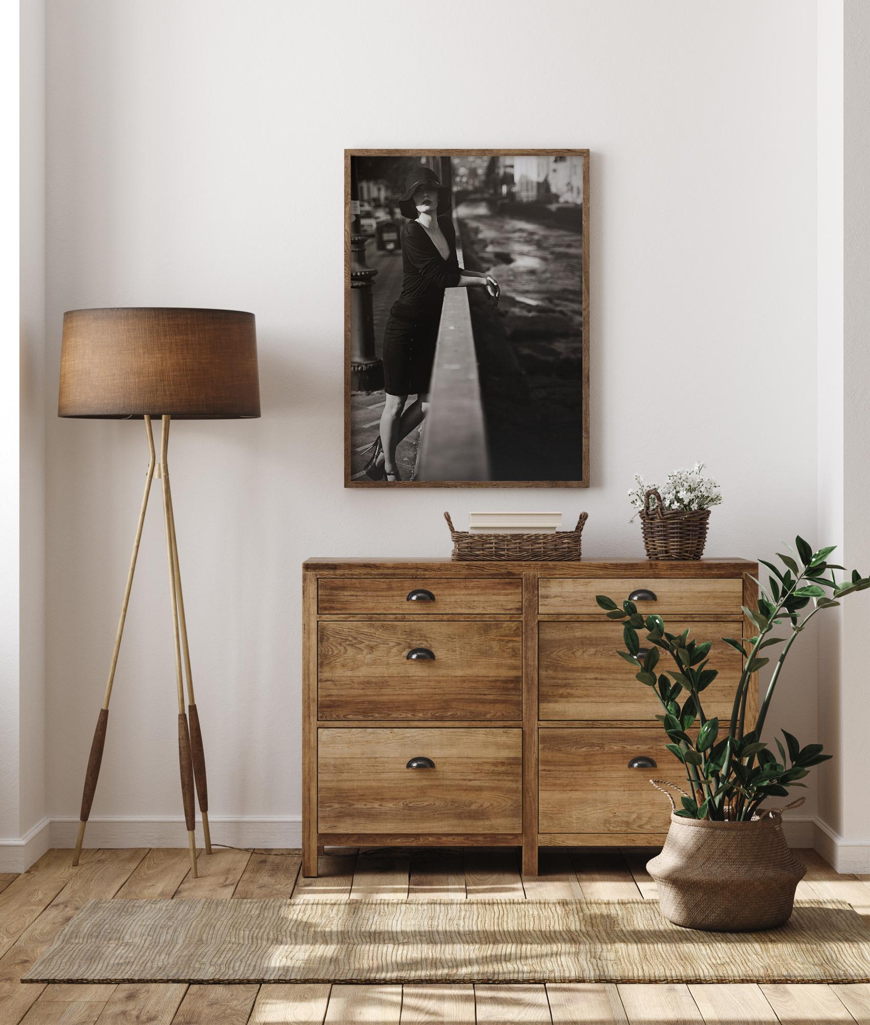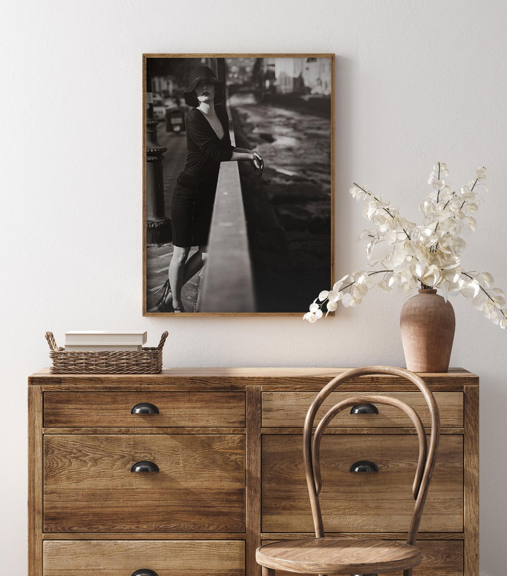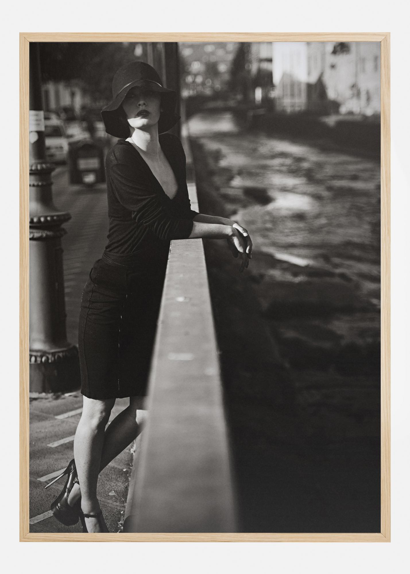 Портрет на жена, която се обляга на стена. Тази невероятна снимка излъчва клас и улавя непринудена елегантност, която е несравнима. Поставете този постер на стената, за да усетите усещане за 30-те години.