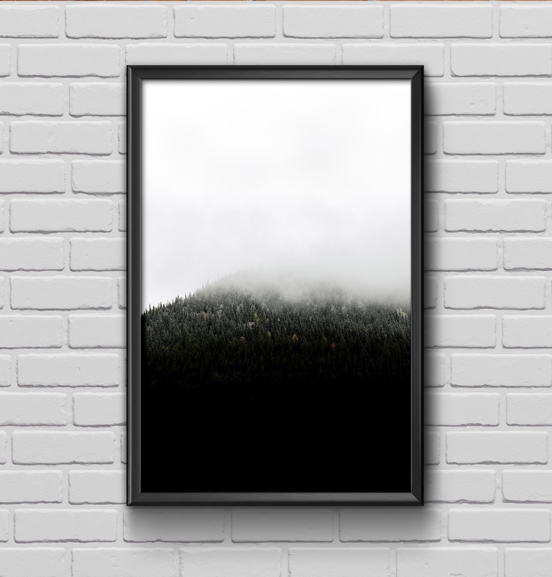 Тих природен фотографски кадър на гора, обгърнала планински връх, който почива под гъста мъгла. Спокоен и хармоничен постер с ясни контрасти и меки линии. Комбинирайте го с няколко от нашите великолепни картини на по-голяма стена с картини.