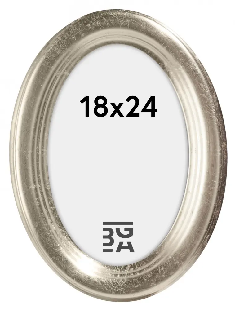 Класическа овална фоторамка от дърво с изискана сребриста профил, перфектна когато търсите портретна рамка с високо качество, която също е произведена в Италия.